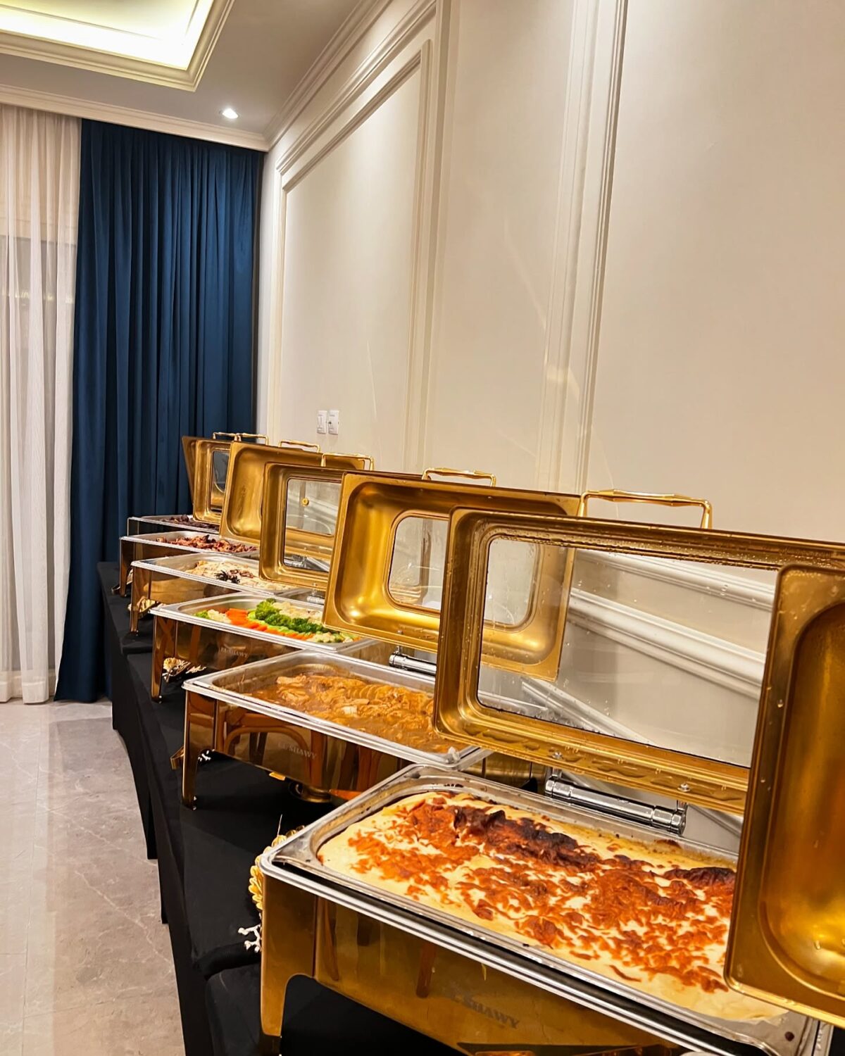 لكن الميزة مش بس في الطعم، طريقة التقديم كمان عليها شغل واضح. البوفيه بيكون متزوق كويس، الأطباق متقسمة بشكل منظم، والألوان متناسقة. حتى أدوات التقديم بيختاروها بعناية علشان تناسب ديكور الفرح. النتيجة إن الضيوف بيلاقوا الأكل مغري بصريًا قبل ما يدوقوه.