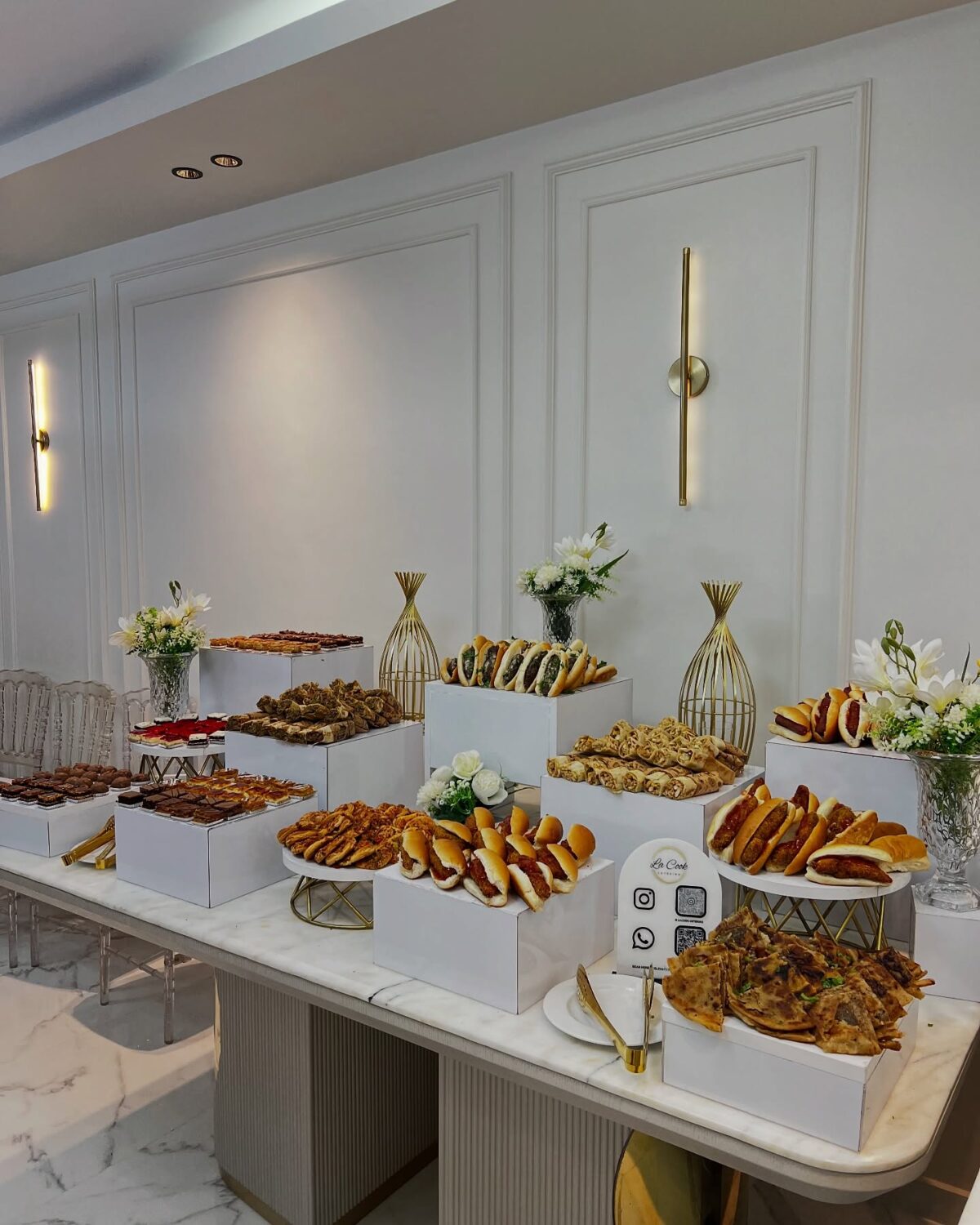 كمان Lacook Catering بيهتموا بالتفاصيل الصغيرة زي ركن الحلويات، سواء كانت شرقية أو غربية. من التشيز كيك والميني تارت، للبقلاوة والكنافة، كله بيتقدم بنفس مستوى الجودة والشكل المرتب.