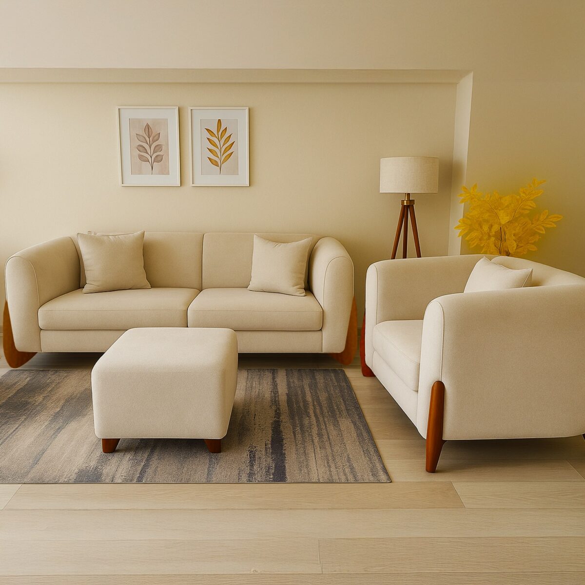 الخامات والتشطيب مش مجرد كلام. MDF عالي الكثافة بواجهات مقاومة للخدش، حواف متشطّبة ناعم من غير “زوايد”، ومعدن في القواعد والمقابض عليه طبقة حماية ضد الصدأ. الأقمشة بتتجرّب قبل العرض، والرغوة الداخلية كثافتها مظبوطة عشان الكنبة تفضل محافظة على شكلها. التفاصيل الصغيرة دي هي اللي بتطوّل عمر القطعة وتقلّل احتياجك للصيانة.