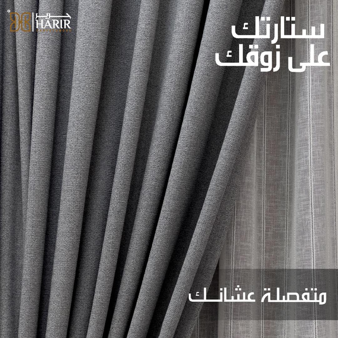 اللي بيميز محل Harir إن كل حاجة فيه بتتعمل تفصيل مخصوص حسب المقاسات وطبيعة البيت. مافيش ستارة جاهزة أو تصميم واحد يناسب الكل، كل شغل بيتنفذ على حسب ذوق العميل ومساحة المكان. الفنيين اللي هناك عندهم خبرة كبيرة جدًا في القص والخياطة، وبيتعاملوا بدقة عالية مع كل خامة علشان الشكل النهائي يطلع متقن ومتناسق. وده اللي بيخلي كل ستارة تطلع كأنها معمولة مخصوص للبيت اللي هتتحط فيه.