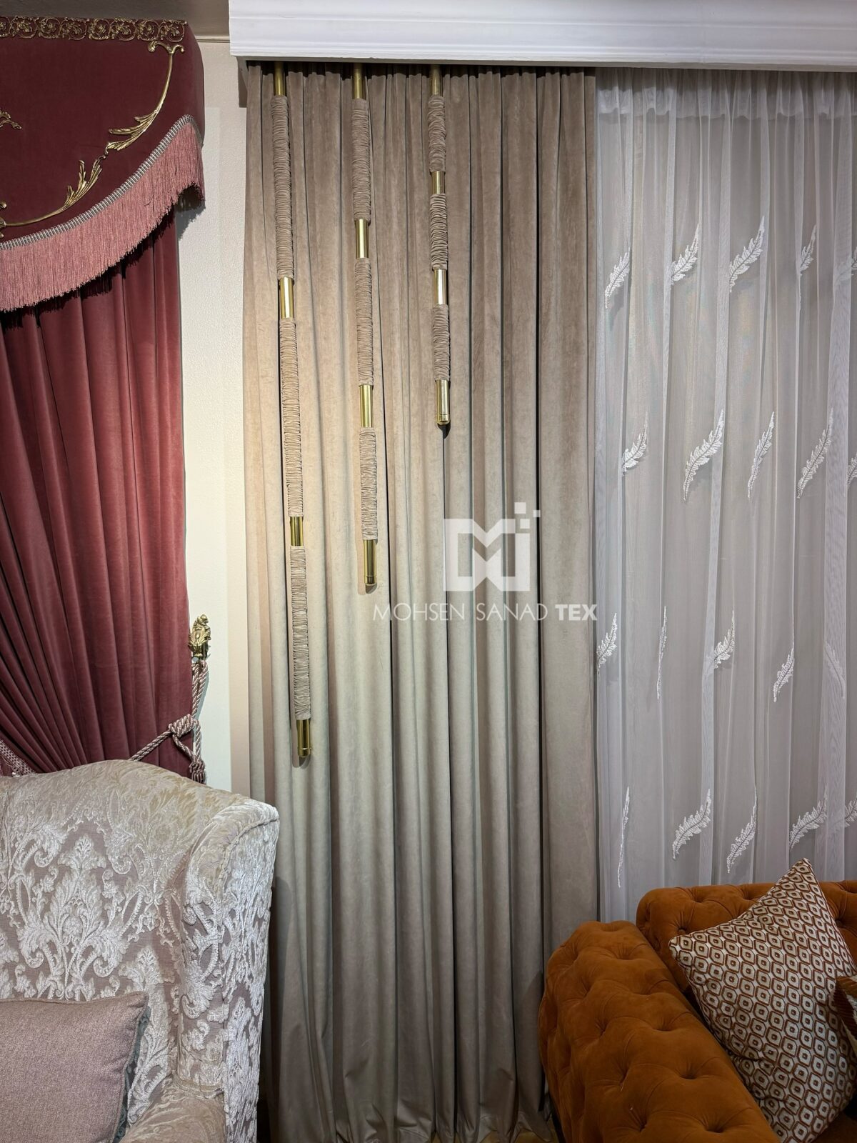 من أول ما تدخل محل Mohsen Sanad هتحس إنك في مكان منظم ومليان ذوق. الأقمشة هناك معروضة بطريقة مرتبة وألوانها متنوعة جدًا، علشان كل واحد يقدر يختار اللي يناسب ديكور بيته. عندهم خامات مودرن بسيطة وناعمة زي الشيفون والكتان بألوان فاتحة ودرجات هادية، وكمان عندهم خامات كلاسيك فخمة زي القطيفة، الحرير، والتل المطرز اللي بتدي إحساس بالفخامة والرقي. كل خامة هناك مختارة بعناية علشان تكون أنيقة وتعيش سنين طويلة بنفس الجمال.