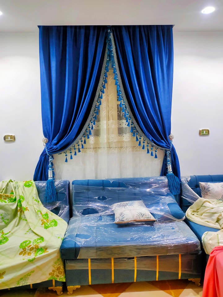 كمان بيقدّموا خدمة القياس المنزلي، ودي بتسهل جدًا على أي عروسة أو عريس لسه بيجهزوا ومش عارفين ياخدوا المقاسات أو يحددوا الخامة المناسبة. حد من الفريق بينزل يقيس الشبابيك والأبواب بدقة، وبيساعد العميل يختار الألوان والأقمشة اللي تمشي مع شكل البيت والإضاءة. الخدمة دي بتخلي النتيجة النهائية دايمًا متكاملة ومريحة للعين.