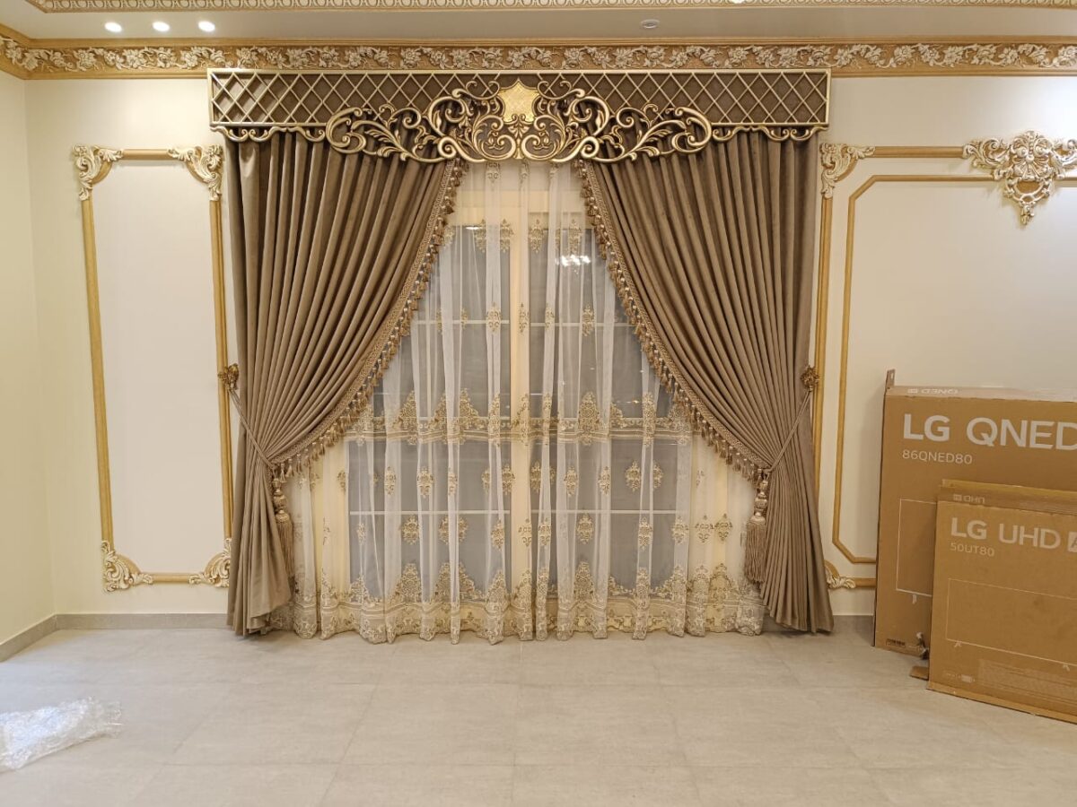 كمان عندهم خدمة القياس المنزلي، ودي من أكتر الحاجات اللي بتريح أي حد بيجهز. حد من الفريق بينزل يقيس الشبابيك والأبواب بدقة، وبيقترح الألوان والتصميمات اللي تمشي مع الإضاءة والعفش، علشان النتيجة النهائية تبقى متناسقة وجميلة. الخدمة دي بتوفر وقت ومجهود كبير وبتخلي كل حاجة مظبوطة من أول مرة.
