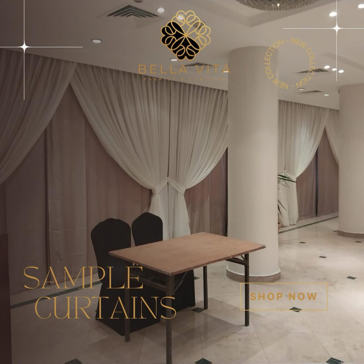 في Bella Vita، هتلاقي اختيارات متنوعة من الستائر اللي تناسب كل الغرف، سواء كنت محتاج ستائر شفافة تسمح بدخول الضوء الطبيعي، أو ستائر ثقيلة توفر الخصوصية والراحة. المحل بيقدم مجموعة من الستايلات المختلفة، ومنها: