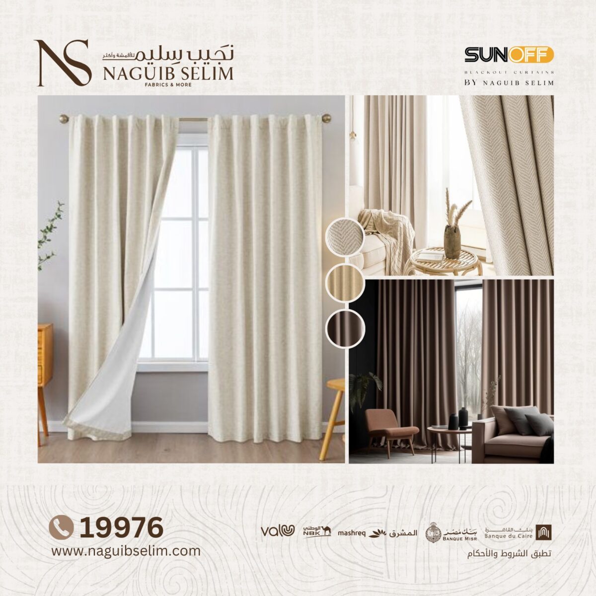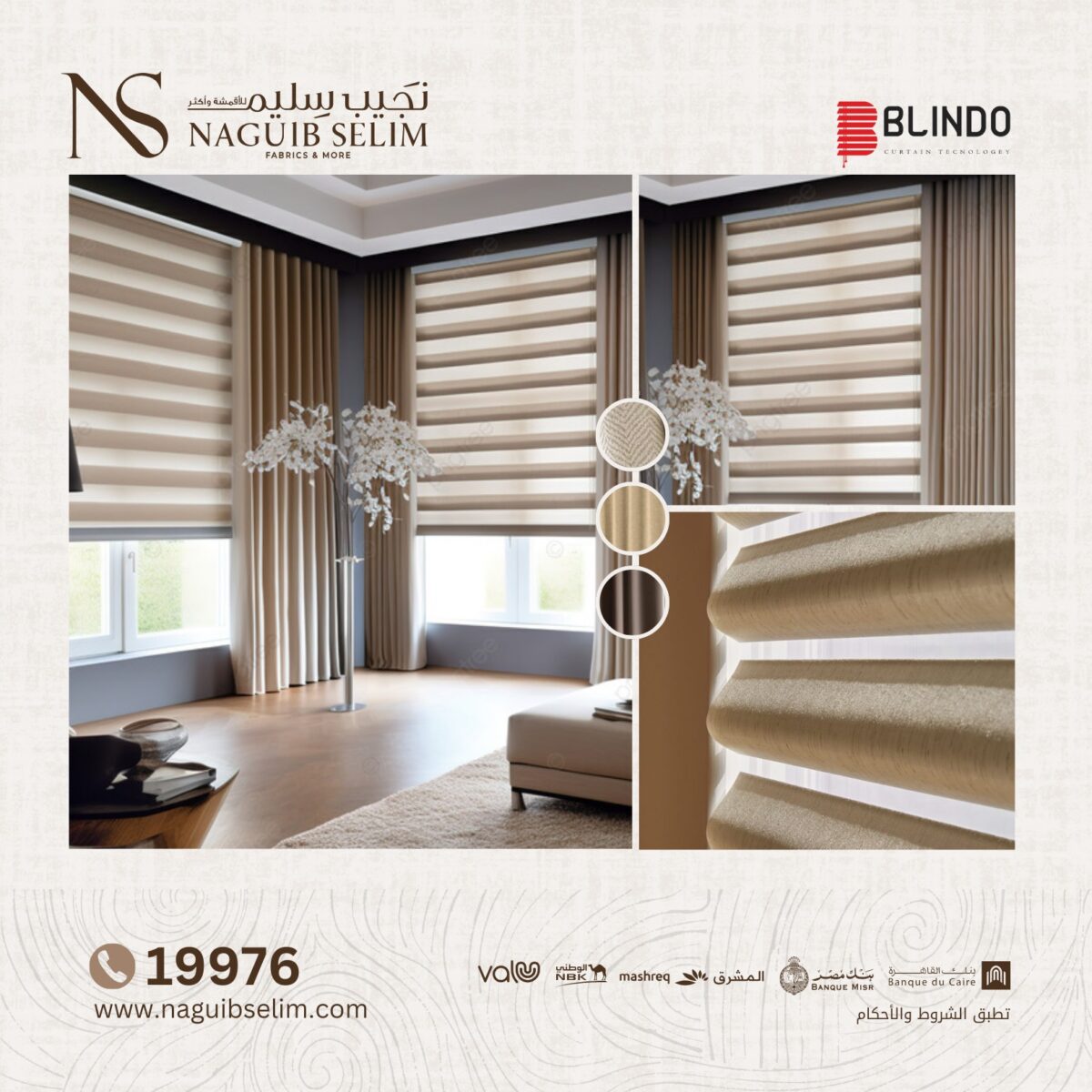 لو بتجهز بيتك وبتدور على مكان يقدم أجود أنواع الأقمشة والستائر التركية والإيطالية بخامات راقية ولمسة فنية مميزة، محل NAGUIB SELIM هيكون اختيار مثالي. لأنهم فعلاً بيهتموا بكل تفصيلة من أول اختيار القماش لحد التركيب، وبيخلوك تستلم شغل راقي، متقن، ويدّي بيتك لمسة فخامة وأناقة على الطراز الأوروبي الحقيقي.