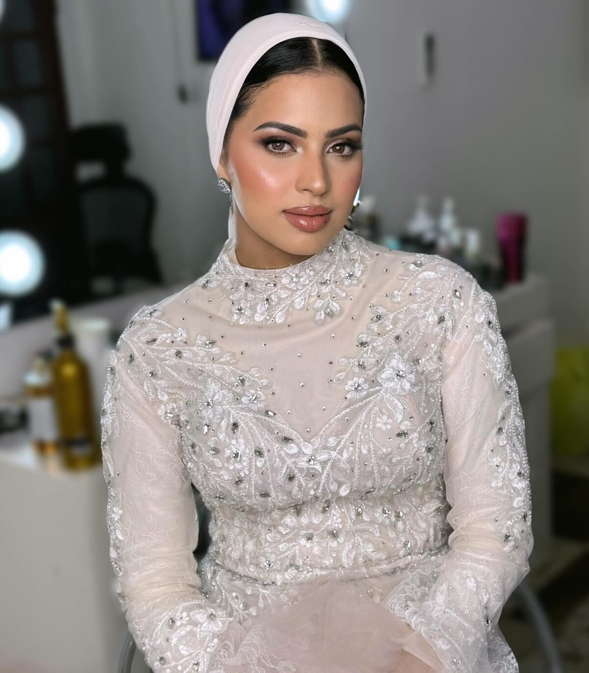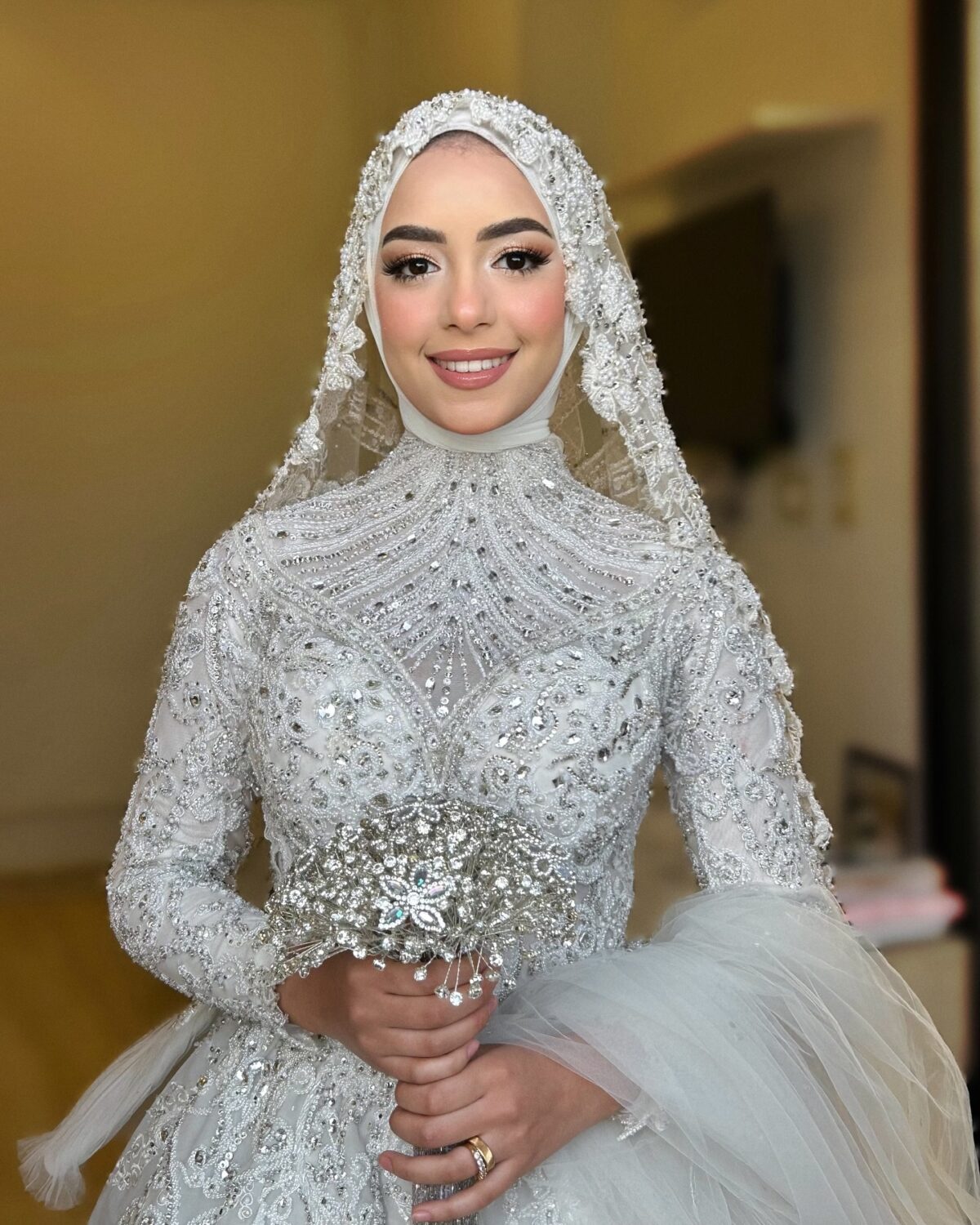 الطرحة عند Sehame مش قطعة منفصلة، لكنها جزء من الفستان نفسه. علشان كده، قبل أي تصميم بتتحدد كل تفاصيل الفستان من شكل التطريز، قصة الرقبة، وطول الديل. بناءً عليه، الطرحة بتتعمل بحيث تبقى مكملة للإطلالة مش مختلفة عنها.