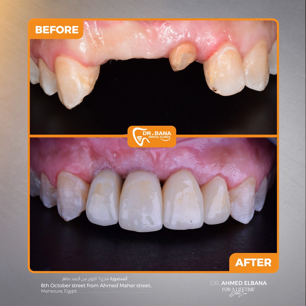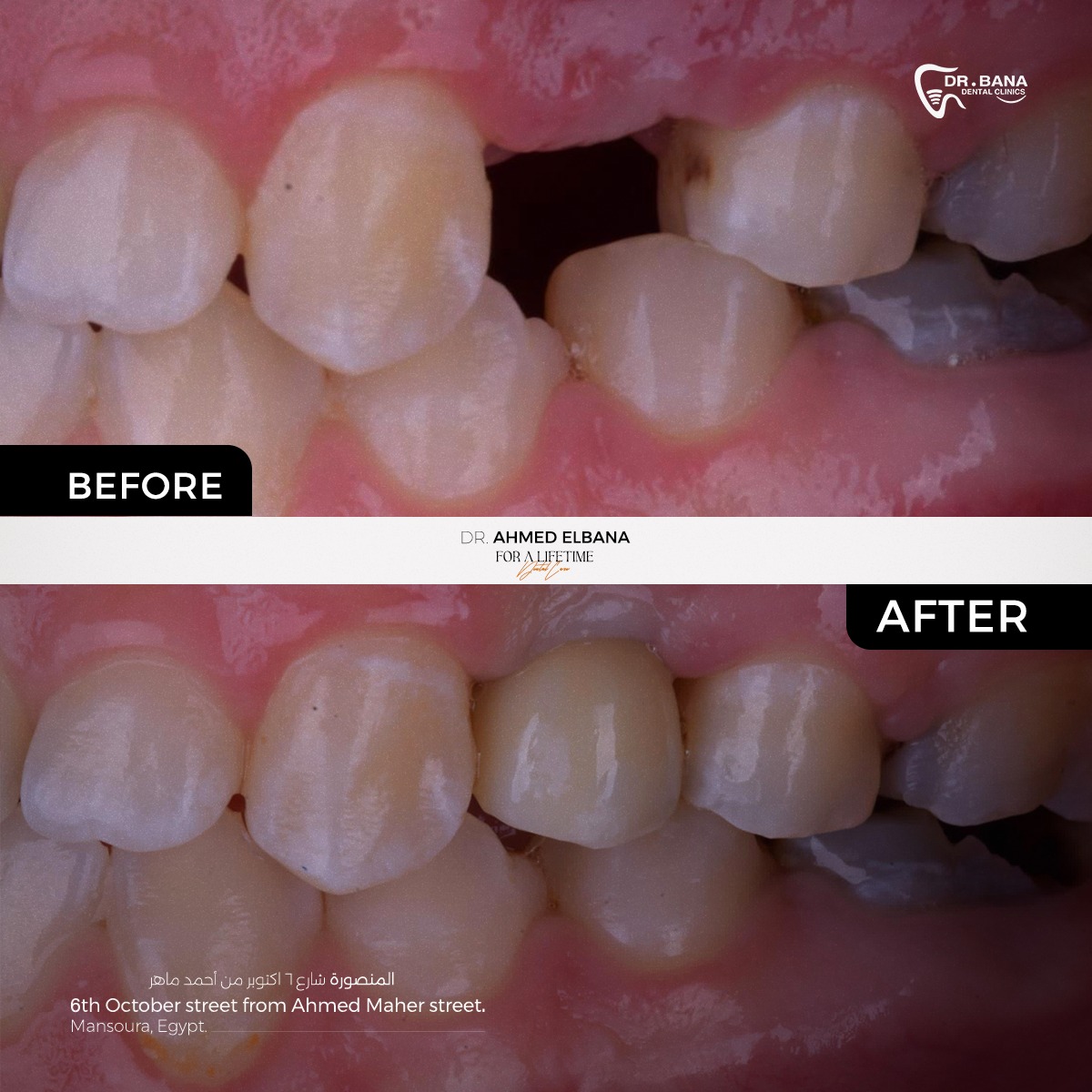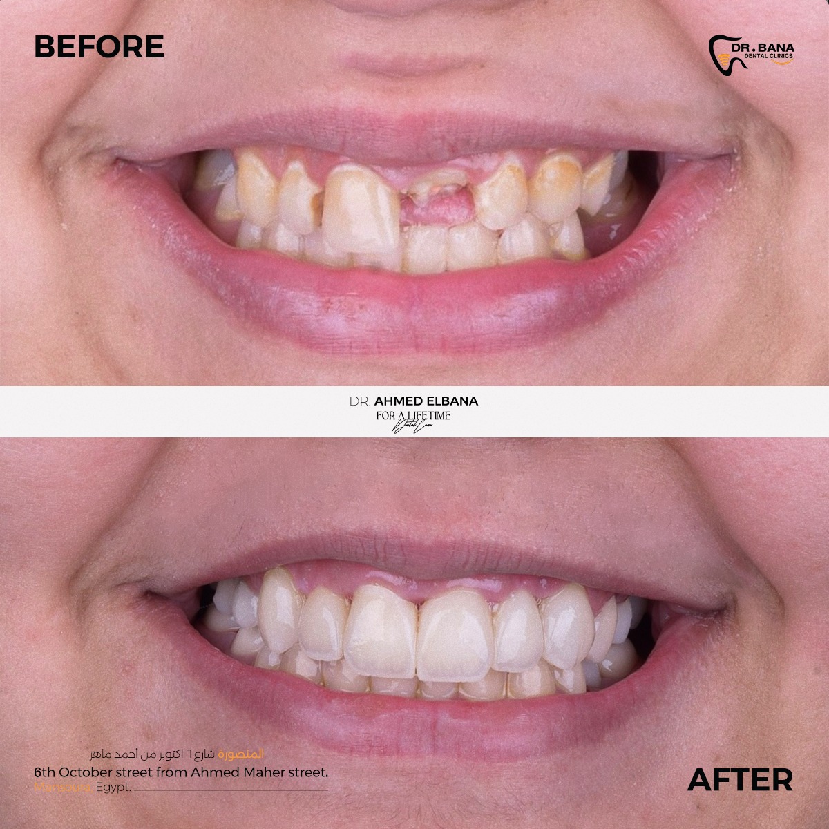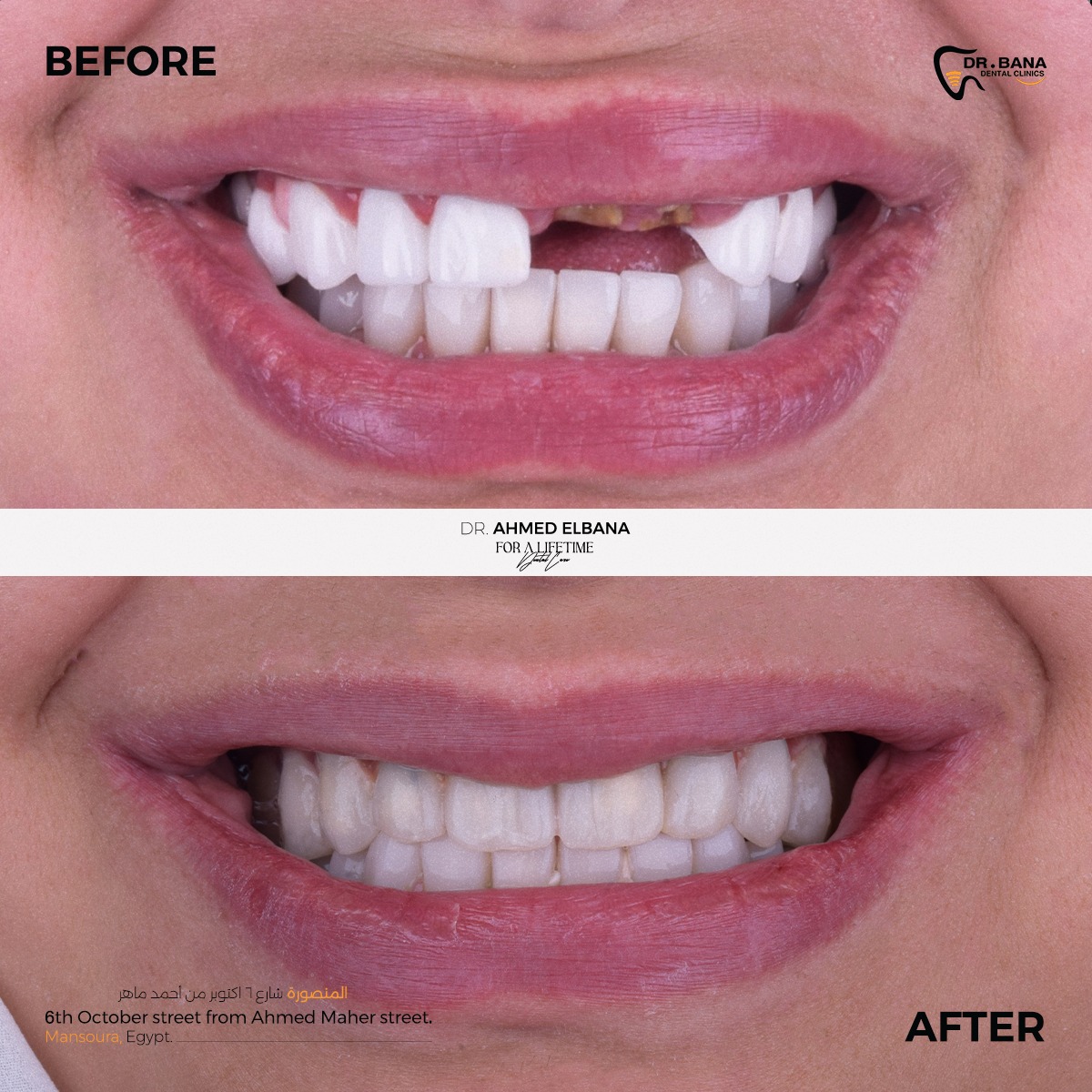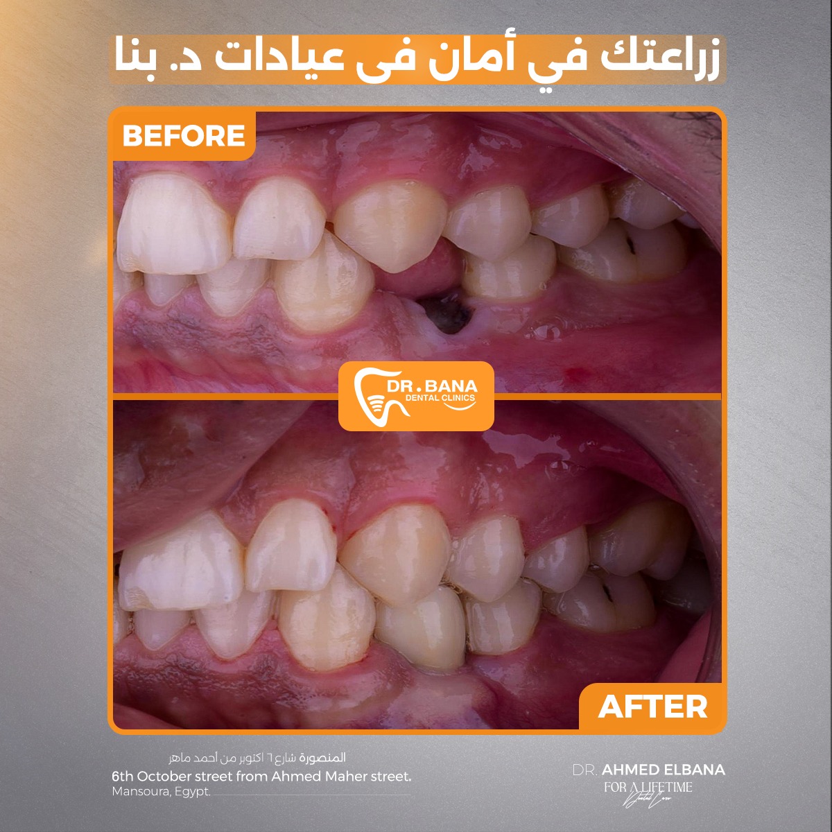 باختصار، Dr. Bana Dental Clinics مش مجرد عيادة أسنان، لكنها مركز بيجمع بين الرقي، الخبرة، والدقة في كل تفصيلة. سواء محتاج علاج بسيط، زراعة، تجميل شامل، أو تجهيز قبل الفرح، هناك هتلاقي كل اللي محتاجه بأسلوب احترافي فعلاً يستحق الثقة. لو بتدور على دكتورة شاطرة، دقيقة، وبتتعامل بذوق وضمير، فـ Dr. Bana Dental Clinics هي المكان اللي أكيد هتخرج منه بابتسامة جميلة وواثقة من أول زيارة.