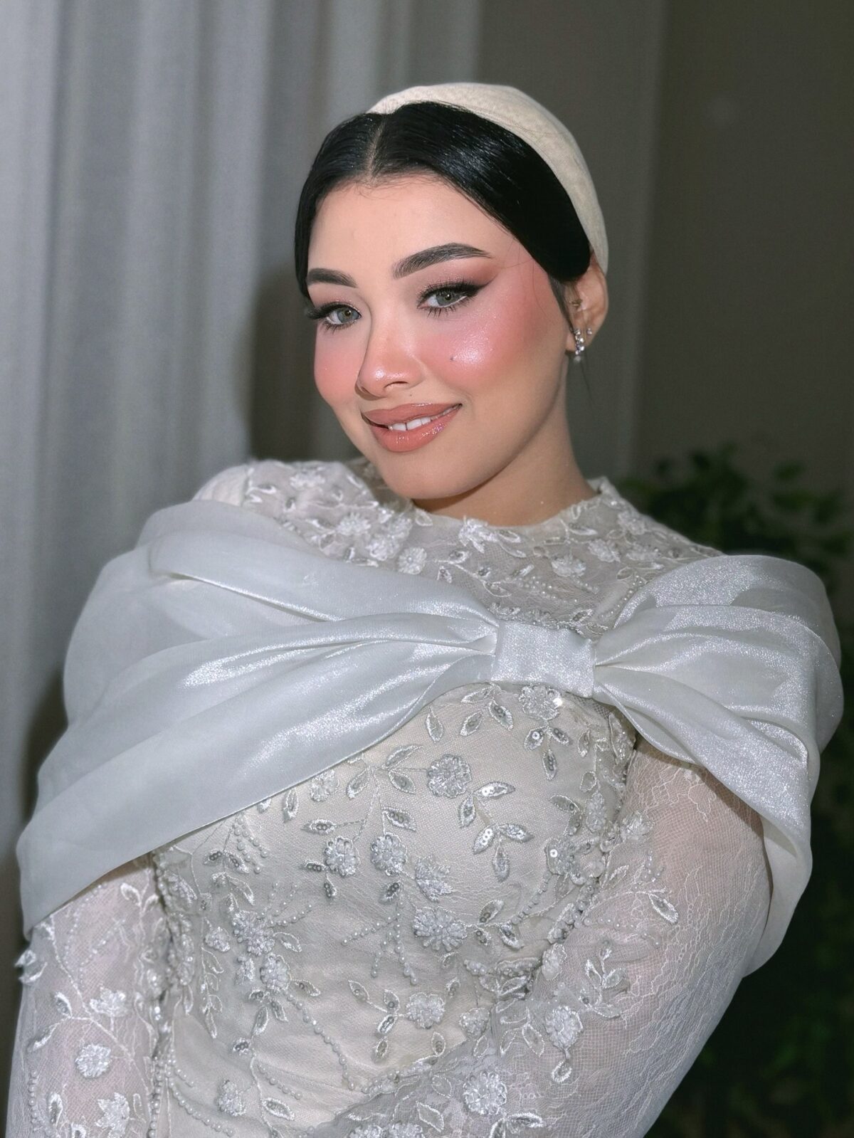 مكياج العيون مع وفاء بيتميز بالتوازن. بتحب تستخدم درجات النيود والبيج للعرايس اللي عايزين إطلالة رقيقة، وكمان بتتقن السموكي بدرجات البني والرمادي للسهرات. بتركب رموش صناعية خفيفة علشان العين تفضل طبيعية وفي نفس الوقت ملفتة، وبتحدد الحواجب بخطوط بسيطة علشان الشكل النهائي يطلع أنيق.