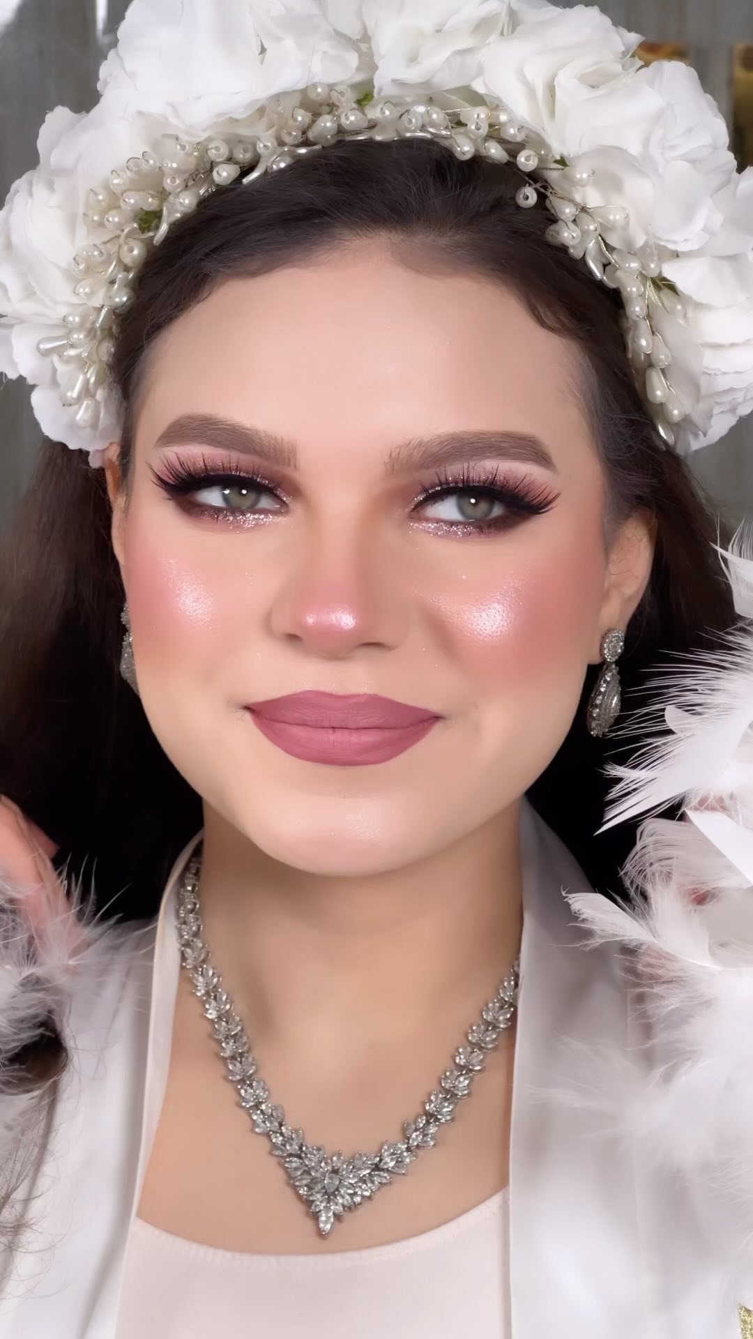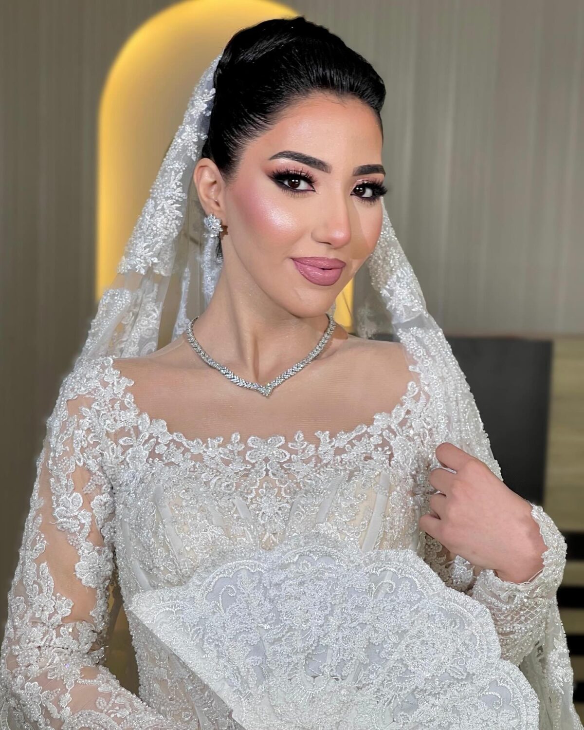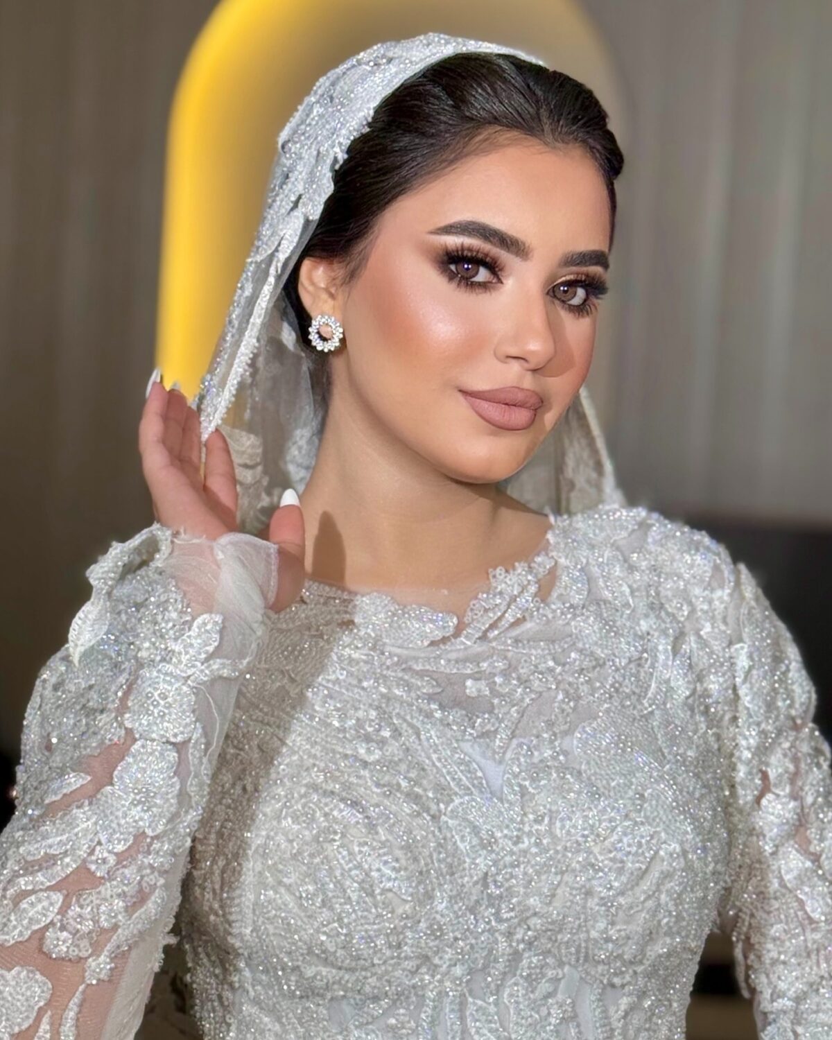 ولو العروسة أو العميلة حابة لوك أقوى، ندى بتعرف تعمل التوازن بين الجرأة والرقة. ممكن تعمل سموكي ناعم بدرجات رمادية أو نحاسية، وتختار لون شفايف قوي زي الأحمر أو الفوشيا، لكن دايمًا بتحافظ إن الشكل النهائي يفضل أنيق ومتناسق مع الملامح. عندها إحساس فني عالي جدًا في توزيع الكونتور والهايلايتر بطريقة خفيفة تبرز الملامح وتدي إشراقة للبشرة من غير ما تبان طبقات أو خطوط.