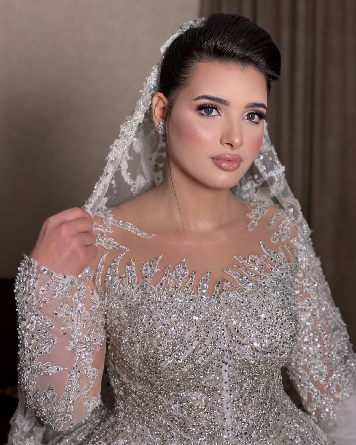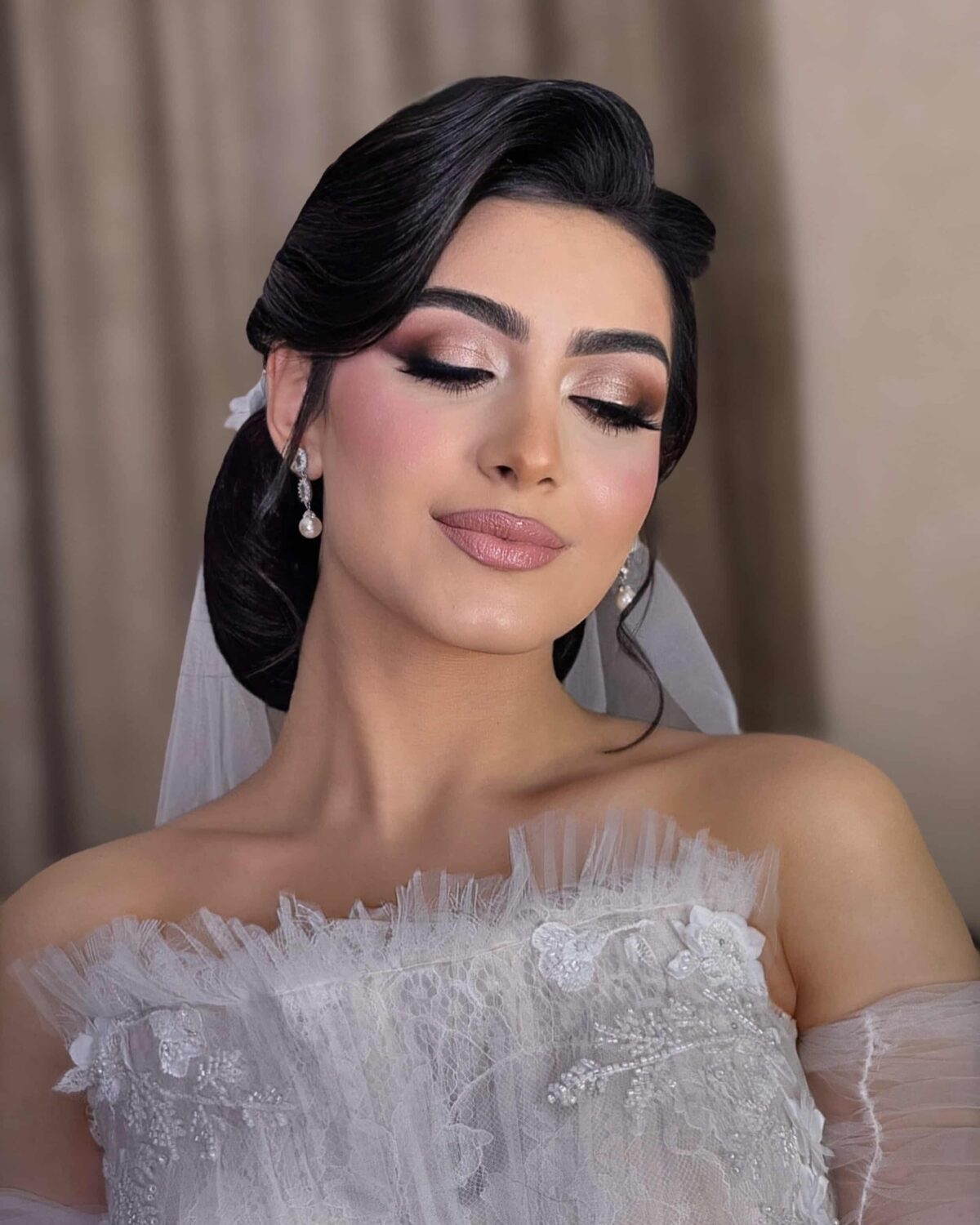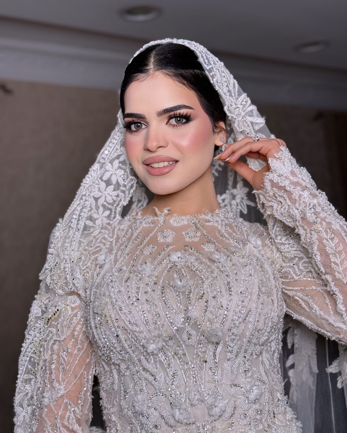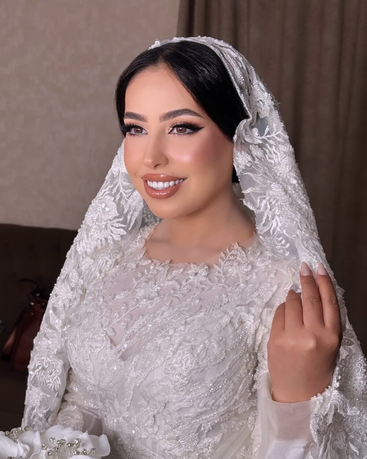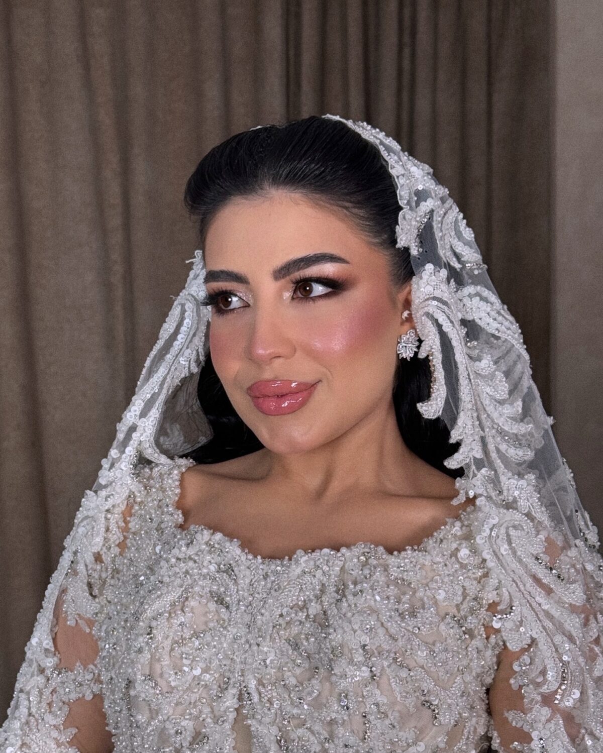 ولو العروسة حابة لوك أقوى، سمرين بتعرف توازن بين الجرأة والرقة. ممكن تستخدم سموكي ناعم بدرجات رمادية أو نحاسية، وتختار لون شفايف قوي زي الأحمر أو الفوشيا، لكن دايمًا بتحافظ إن الشكل النهائي يفضل أنيق ومناسب للملامح. عندها إحساس فني عالي جدًا في توزيع الكونتور والهايلايتر بطريقة ناعمة تبرز الملامح وتدي إشراقة طبيعية للبشرة.