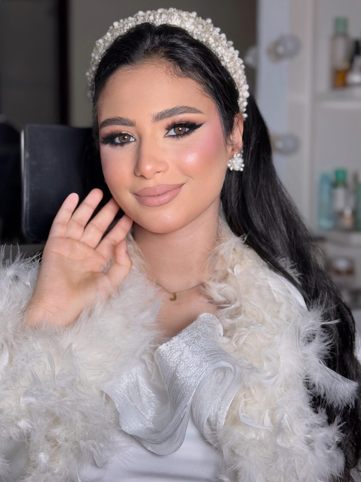 من أول ما تتعامل معاها بتحسي إنها بتفهمك بسرعة وبتعرف تختارلك الستايل اللي يليق عليكي. بتحب تبدأ أي جلسة ميكب بجلسة استشارة قبل المناسبة، بتتكلم فيها معاكي عن لون الفستان، تسريحة الشعر، نوع البشرة، وطبيعة المكان سواء في قاعة أو فوتوسيشن خارجي. الخطوة دي بتساعدها تختار الألوان المناسبة علشان اللوك النهائي يطلع متكامل ومريح للعين.