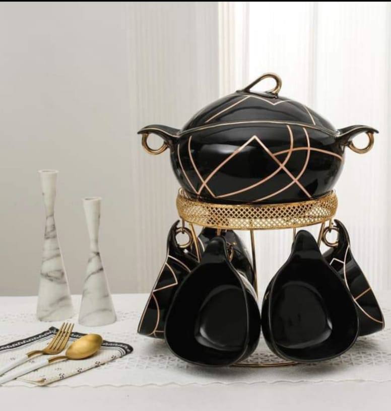 أما قسم السفرة والتقديم، فمتنوع جدًا. أطقم أطباق بورسلين وزجاج بألوان محايدة أو نقوش بسيطة تناسب المودرن والكلاسيك، ومعاها كاسات عصير وفناجين شاي وقهوة. كمان فيه صواني تقديم وأباريق عملية تدي شكل متكامل وتسهّل الضيافة سواء في المناسبات أو في الاستخدام اليومي.
