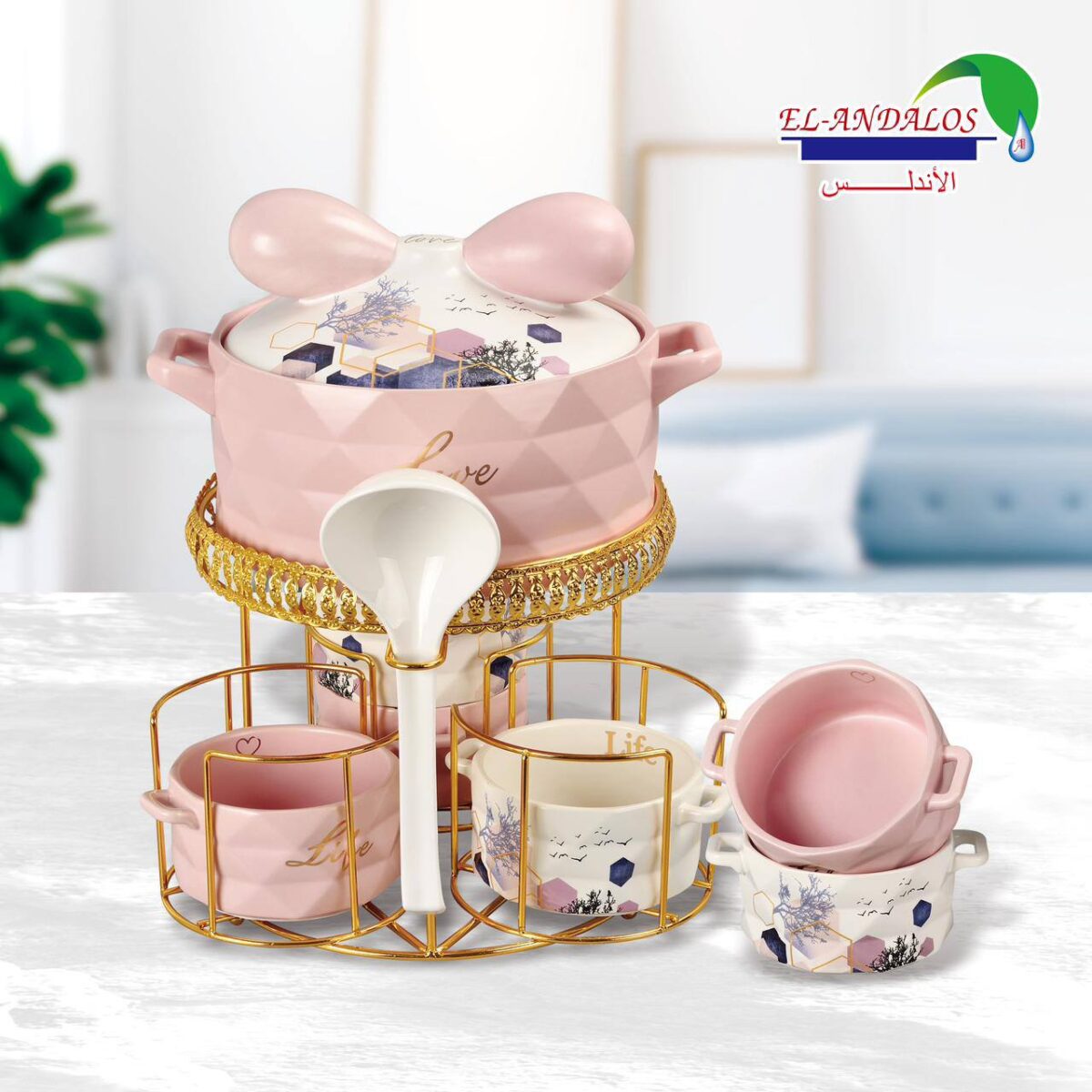 قسم السفرة والتقديم واخد مساحة كبيرة. أطقم أطباق بورسلين وزجاج بألوان ونقوش بسيطة تناسب المودرن والكلاسيك، ومعاها كاسات عصير وفناجين قهوة وشاي. كمان فيه صواني تقديم وأباريق عملية تضيف لمسة أنيقة وتخلي المائدة شكلها متكامل سواء في المناسبات أو في الروتين اليومي.