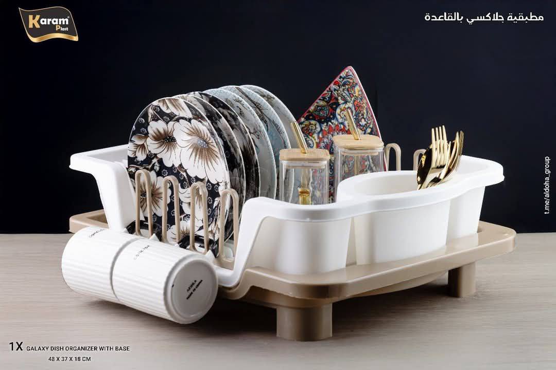 قسم السفرة والتقديم واخد مساحة واضحة. أطقم أطباق بورسلين وزجاج بألوان هادية تناسب كل الأذواق، ومعاها كاسات عصير وفناجين قهوة وشاي. كمان فيه صواني تقديم وأباريق عملية تسهّل الضيافة وتدي شكل متكامل للمائدة سواء في المناسبات أو الروتين اليومي.