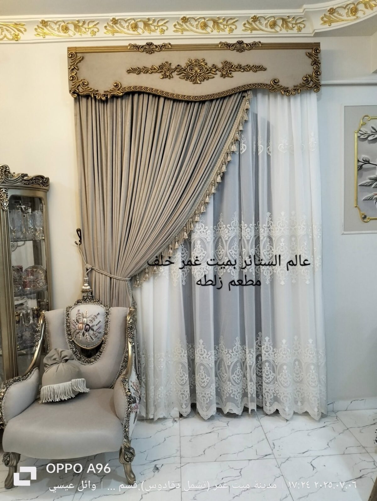من أول ما تدخل محل عالم الستائر هتحس إنك في مكان فاهم يعني إيه ديكور متكامل. الأقمشة هناك معروضة بطريقة شيك ومنظمة، وكل ركن فيه تشكيلات مختلفة من الخامات والألوان علشان كل واحد يلاقي اللي يناسب ذوقه. عندهم أنواع أقمشة متنوعة جدًا، من القطيفة الفخمة والحرير الناعم لحد الشيفون والتل والكتان اللي بيضيفوا خفة وأناقة. الألوان كمان متدرجة بشكل يخليك تختار بسهولة، سواء بتحب الستايل المودرن البسيط أو الكلاسيكي اللي فيه لمسة فخامة.