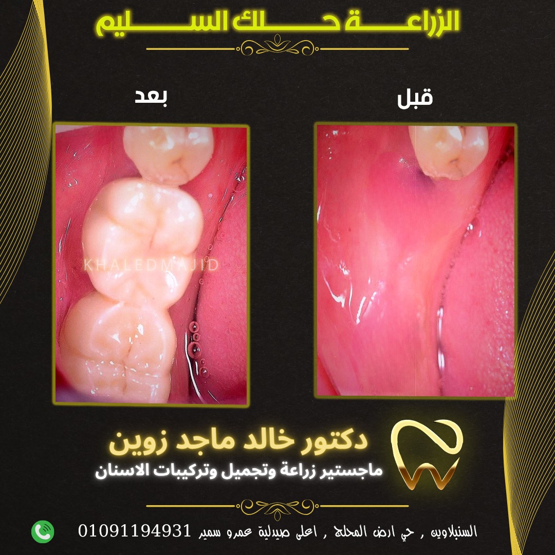 أما الزراعة فهي من أكتر المجالات اللي الدكتور خالد متميز فيها. الزراعة هناك بتتعمل بخامات عالية الجودة وباستخدام تقنيات رقمية حديثة بتخلي شكل الزرعة طبيعي وثابت كأنها السنة الأصلية بالضبط. النتيجة بتكون مريحة جدًا سواء في الشكل أو في الاستخدام، وبتخلي المريض يستعيد ثقته في نفسه وابتسامته من أول جلسة.