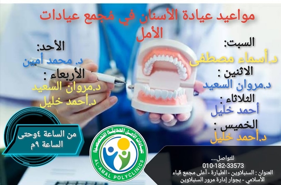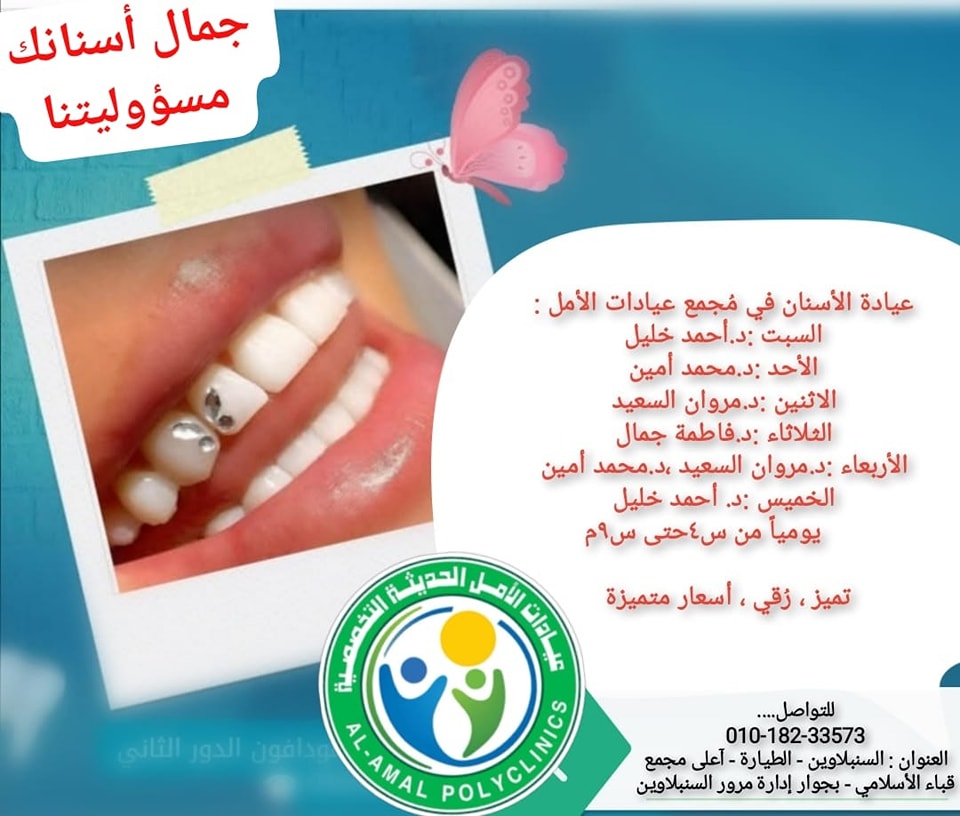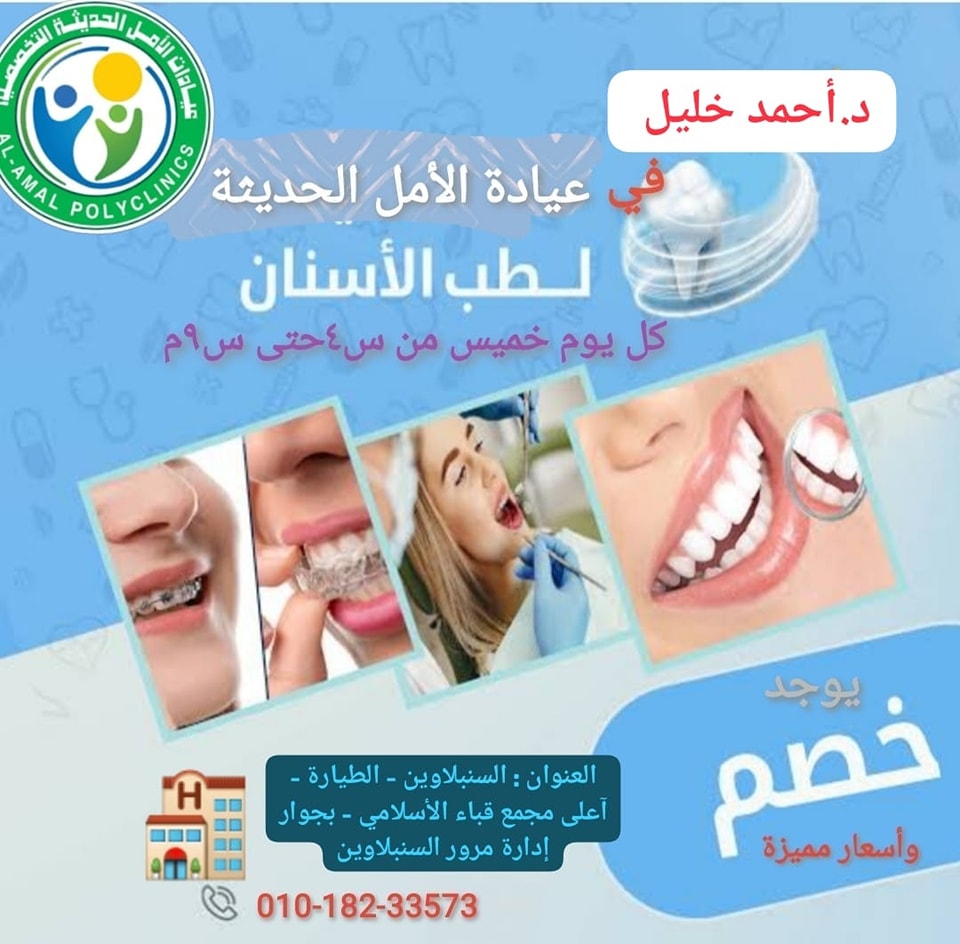 عيادات الأمل الحديثة التخصصية تعتبر من المراكز الطبية اللي قدرت تحقق مكانة قوية جدًا في مجال طب وتجميل الأسنان في مصر، وده لأنها بتجمع بين الخبرة الكبيرة، الأجهزة الحديثة، والدقة العالية في الشغل اللي بتخلي تجربة المريض مريحة وآمنة من أول زيارة. أول ما تدخل العيادات بتحس إنك في مكان راقي ومتكامل فعلًا، فيه هدوء ونظام ونظافة مميزة، وكل حاجة معمولة بعناية علشان تضمن راحة المريض وثقته في الخدمة اللي بيتلقاها.