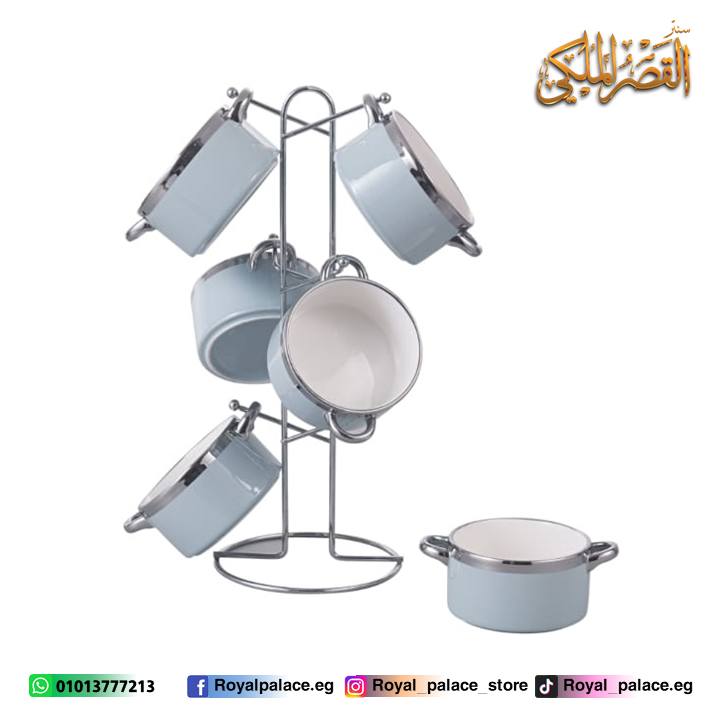 في قسم الطهي، القصر الملكي بيعرض قدور ومقالي ستانلس ستيل مقاوم للصدأ بأحجام مختلفة تناسب الأكل اليومي والعزومات، ومعاها مقالي غير لاصقة بخامات متينة توزّع الحرارة كويس وتخلي التنضيف سريع. كمان فيه صواني فرن ألومنيوم، قوالب سيليكون للحلويات، وأواني زجاج حراري تقدّم بيها الأكل مباشرة على السفرة.