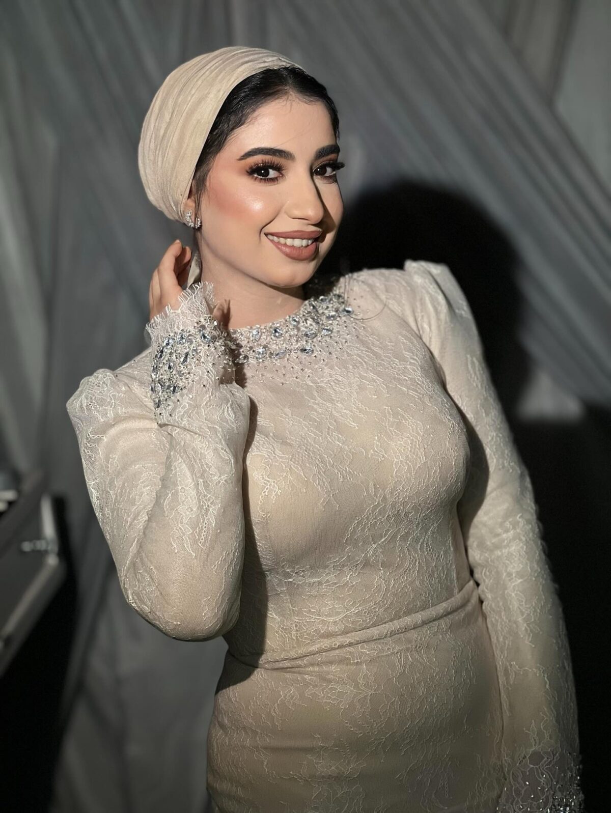 نعيمة كمان بتركز على استخدام منتجات عالية الجودة وآمنة على البشرة. هي عارفة تختار المستحضرات اللي تناسب كل نوع بشرة سواء كانت دهنية أو جافة أو مختلطة، وده بيساعد المكياج يفضل ثابت لفترة طويلة من غير ما يسبب أي مشاكل. النقطة دي بتديكي راحة وثقة إن إطلالتك هتفضل مثالية طول المناسبة.