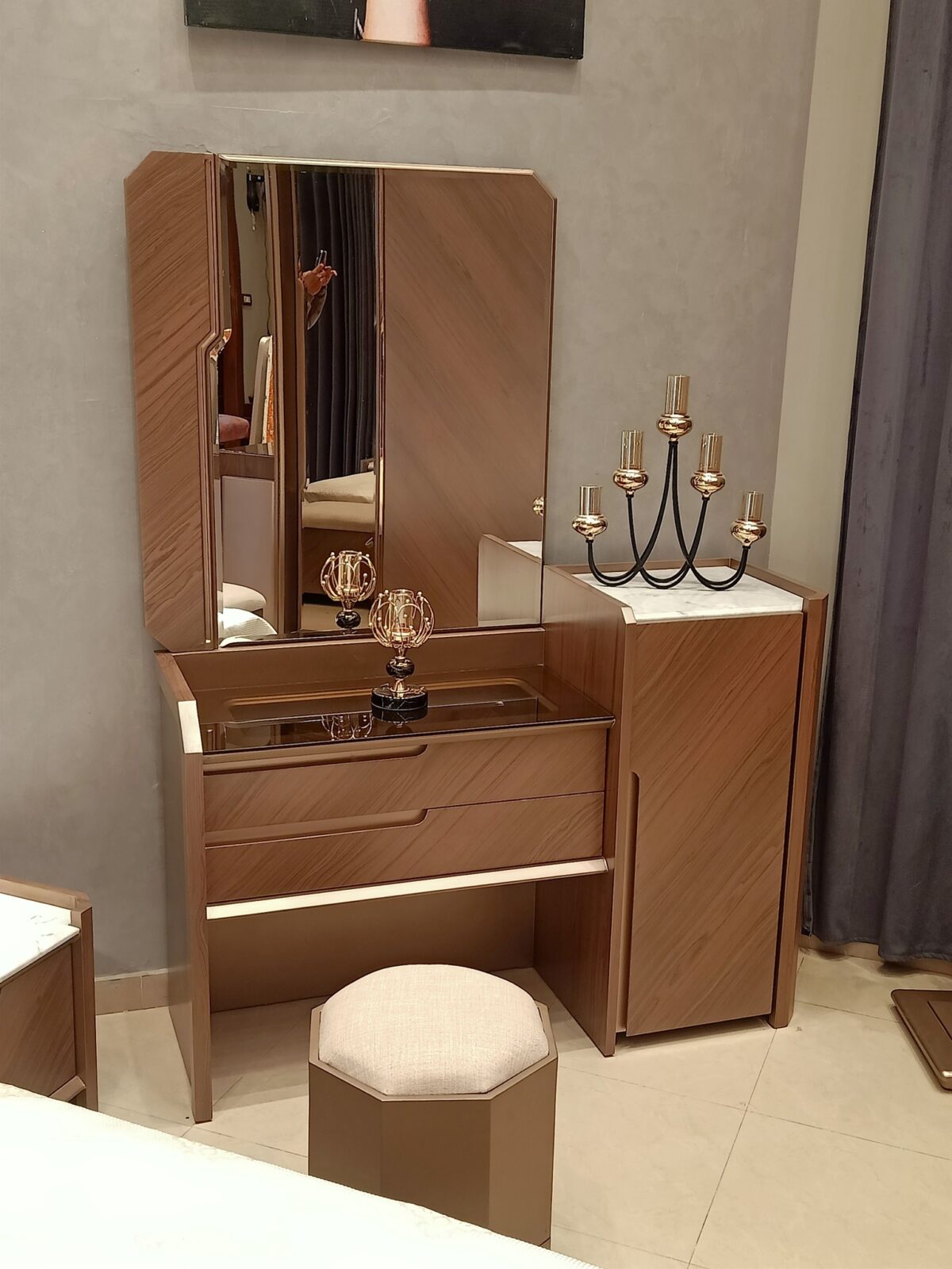 المعرض بيعرض كمان وحدات تلفزيون، ترابيزات قهوة، مكتبات، كونسولات، ومرايات حائط، وكلها بنفس روح التصميم سواء مودرن أو كلاسيك، وده بيساعدك تكمّل ديكور بيتك بسهولة.