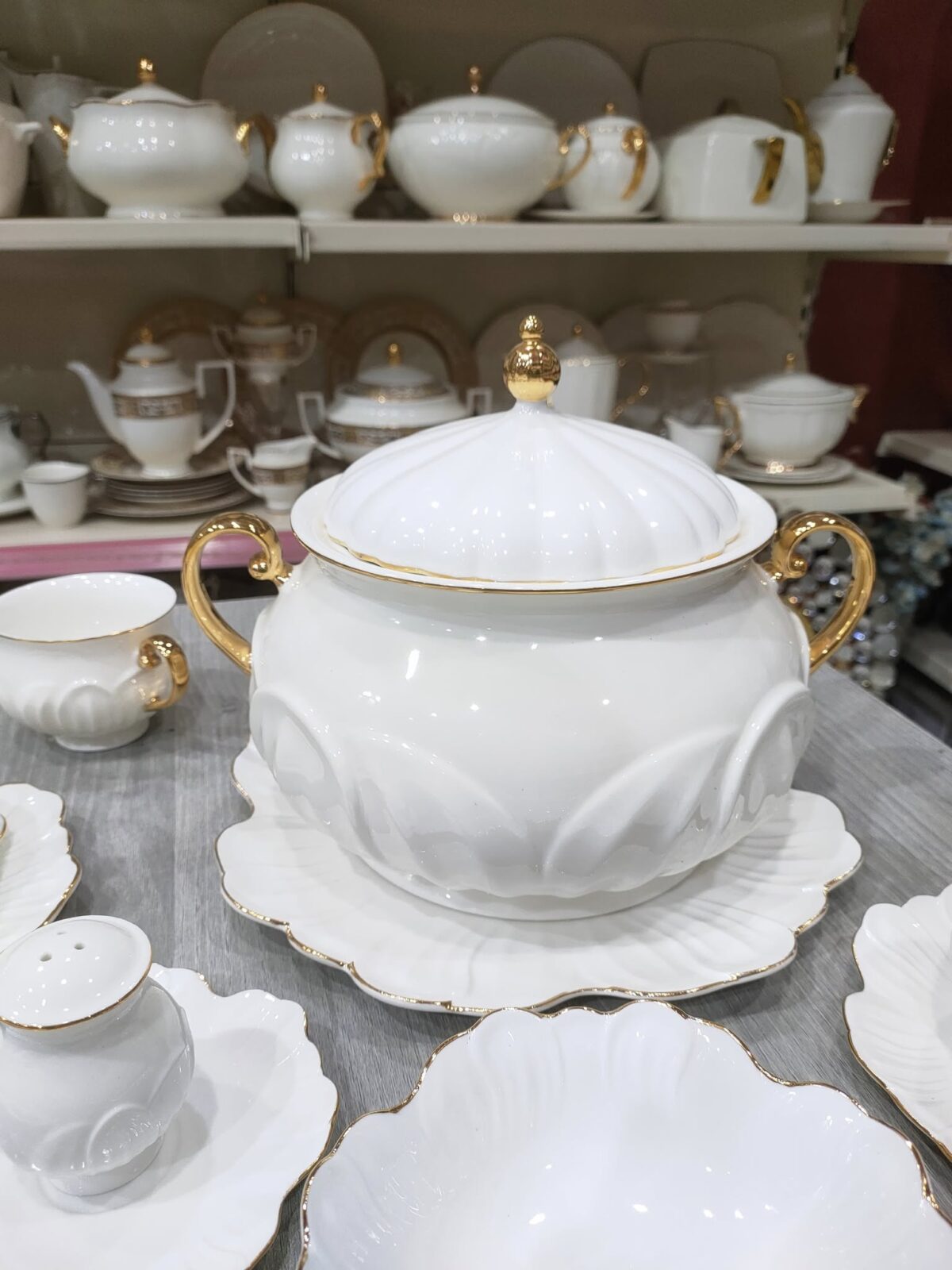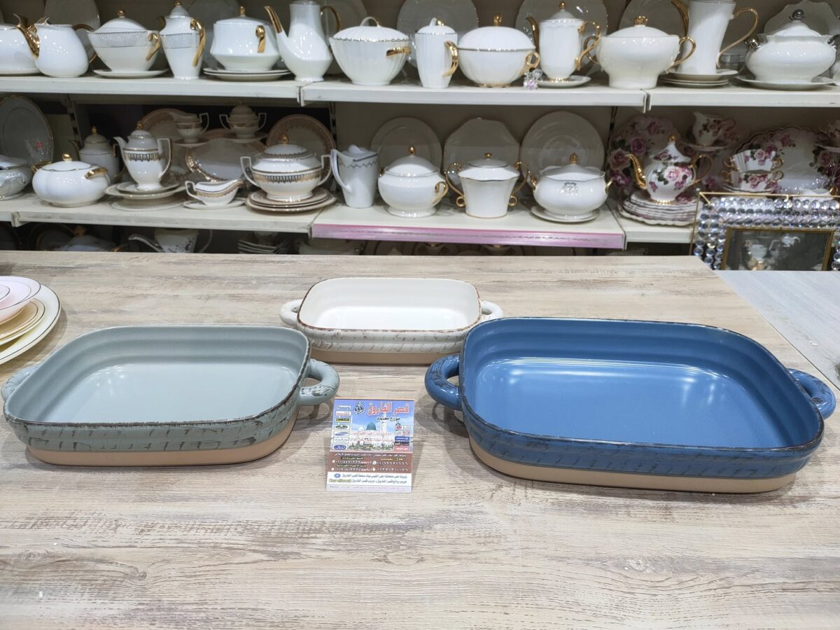 قسم السفرة والتقديم واخد اهتمام كبير. أطقم أطباق بورسلين وزجاج بألوان ونقوش شيك تناسب المودرن والكلاسيك، ومعاها كاسات عصير وفناجين شاي وقهوة. كمان فيه صواني تقديم وأباريق عملية بتدي شكل متكامل وتسهّل الضيافة سواء في المناسبات أو في الروتين اليومي.