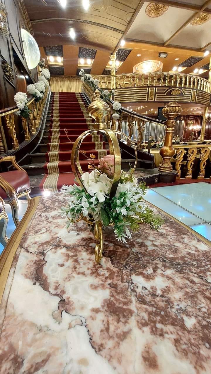 مكان العروسين دايمًا بيكون محور الاهتمام، علشان كده تجهيز المنصة بيكون من أهم العناصر في أي قاعة. المنصة لما تكون واضحة والمساحة اللي حواليها محسوبة صح بتخلي دخول العروسين والفقرات الأساسية تمشي بسلاسة ومن غير لخبطة. التفاصيل البسيطة في الجزء ده بتفرق في الإحساس العام وبتخلي اللحظات المهمة تطلع منظمة وطبيعية.