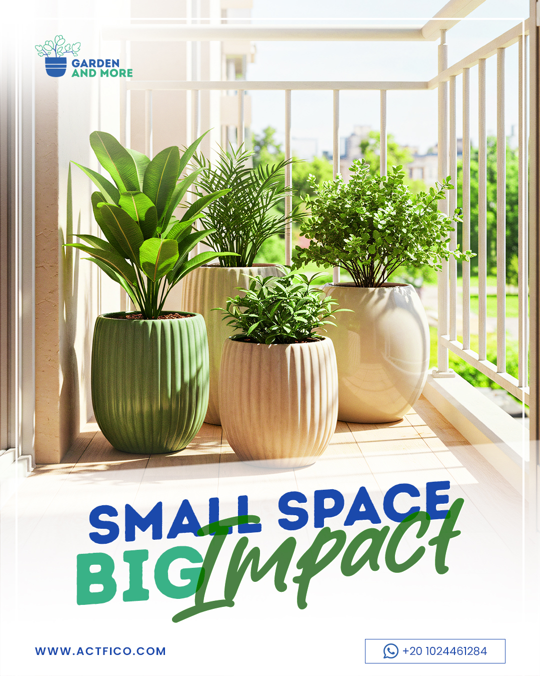 التنسيق الاحترافي بيتم مع فريق Garden & More اللي بيزور موقعك ياخد باله من اضاءة الشمس اليومية وشكل الاثاث والمساحات الفاضية ويظبط مكان كل شجرة بحيث نور الشمس يبان كويس ويخش الاماكن الصح وممكن يرش شوية رمل صناعي او حصى اخضر ارضي حوالين الاواني عشان يبين نضيف