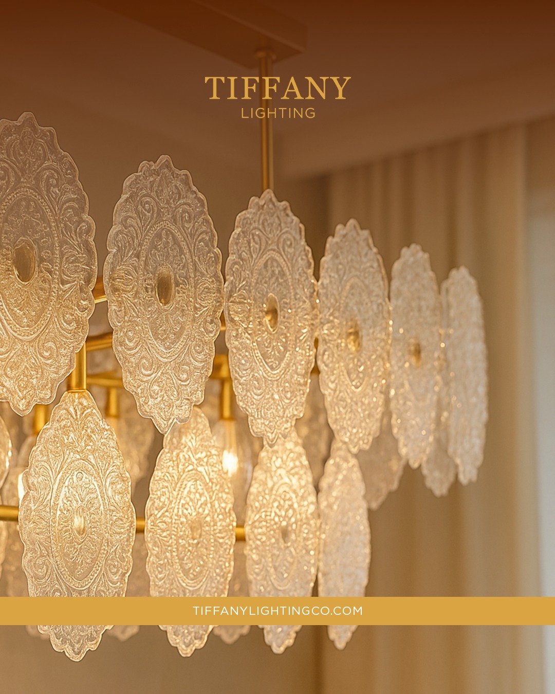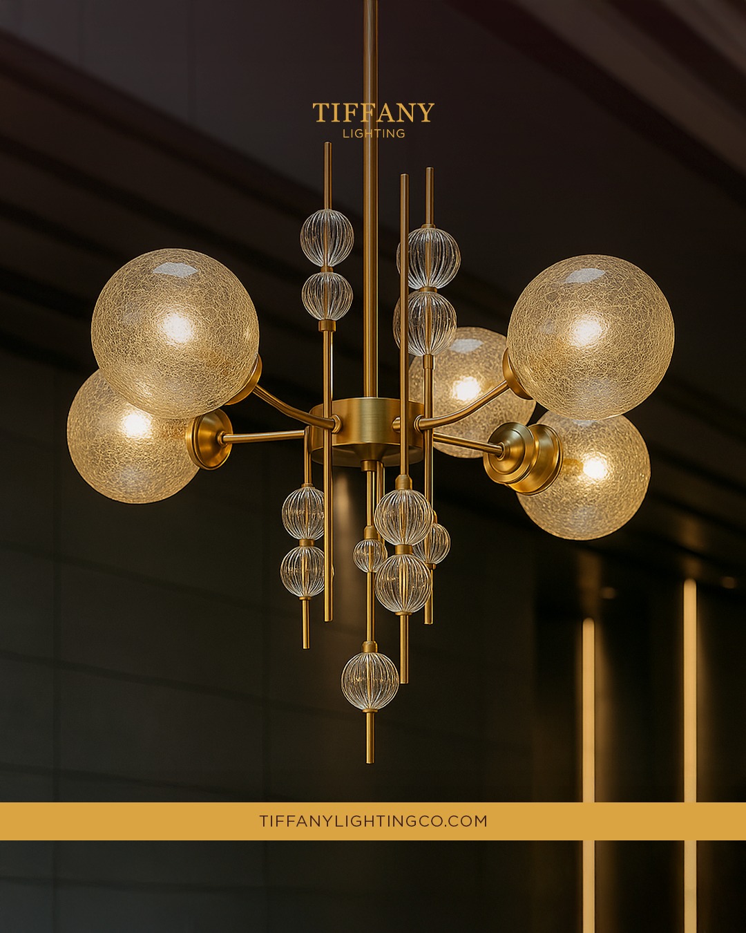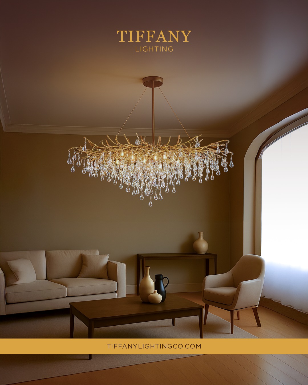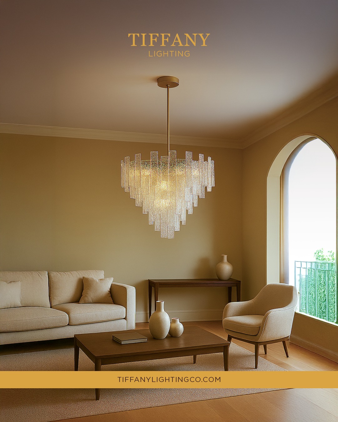نجف الصالون في Tiffany Lighting ليه سحر خاص فيه موديلات بأحجام مختلفة من الثريات الكريستال الفاخر اللي بيعكس الضوء بطريقة تضيف احساس بالرفاهية والاتساع وكمان موديلات معدنية بتصاميم هندسية بسيطة بتليق في الريسبشن المفتوح والغرف اللي عايزاها تبقى مميزة في الليل والنهار
