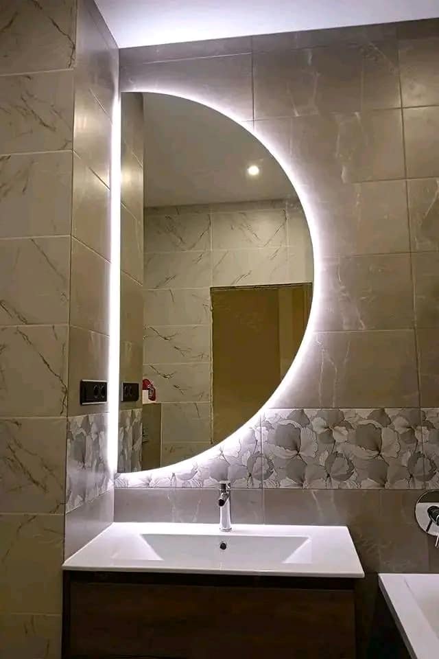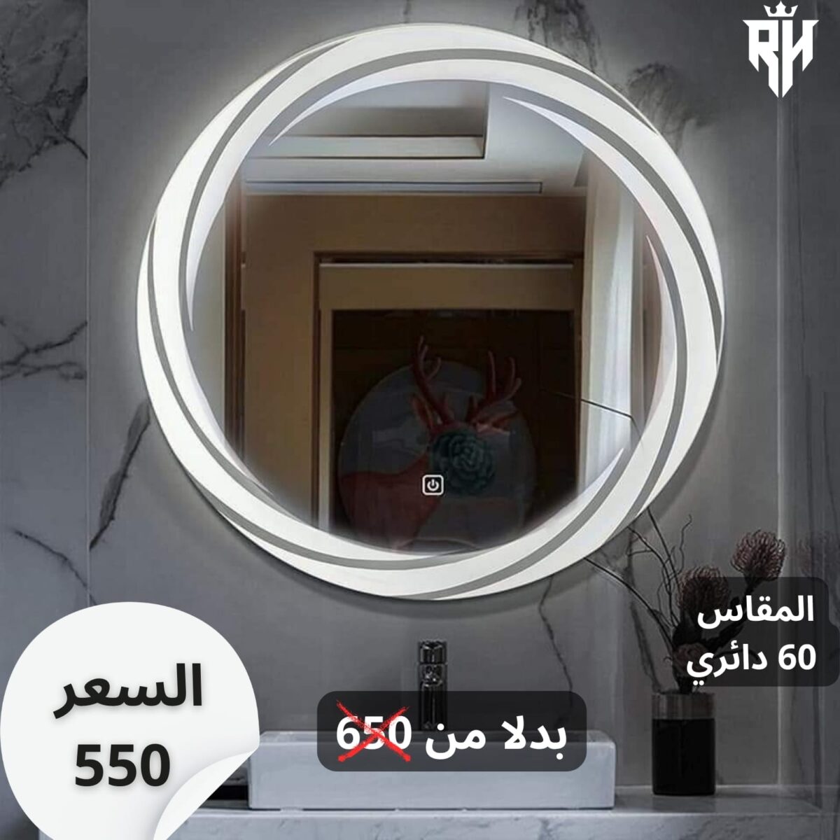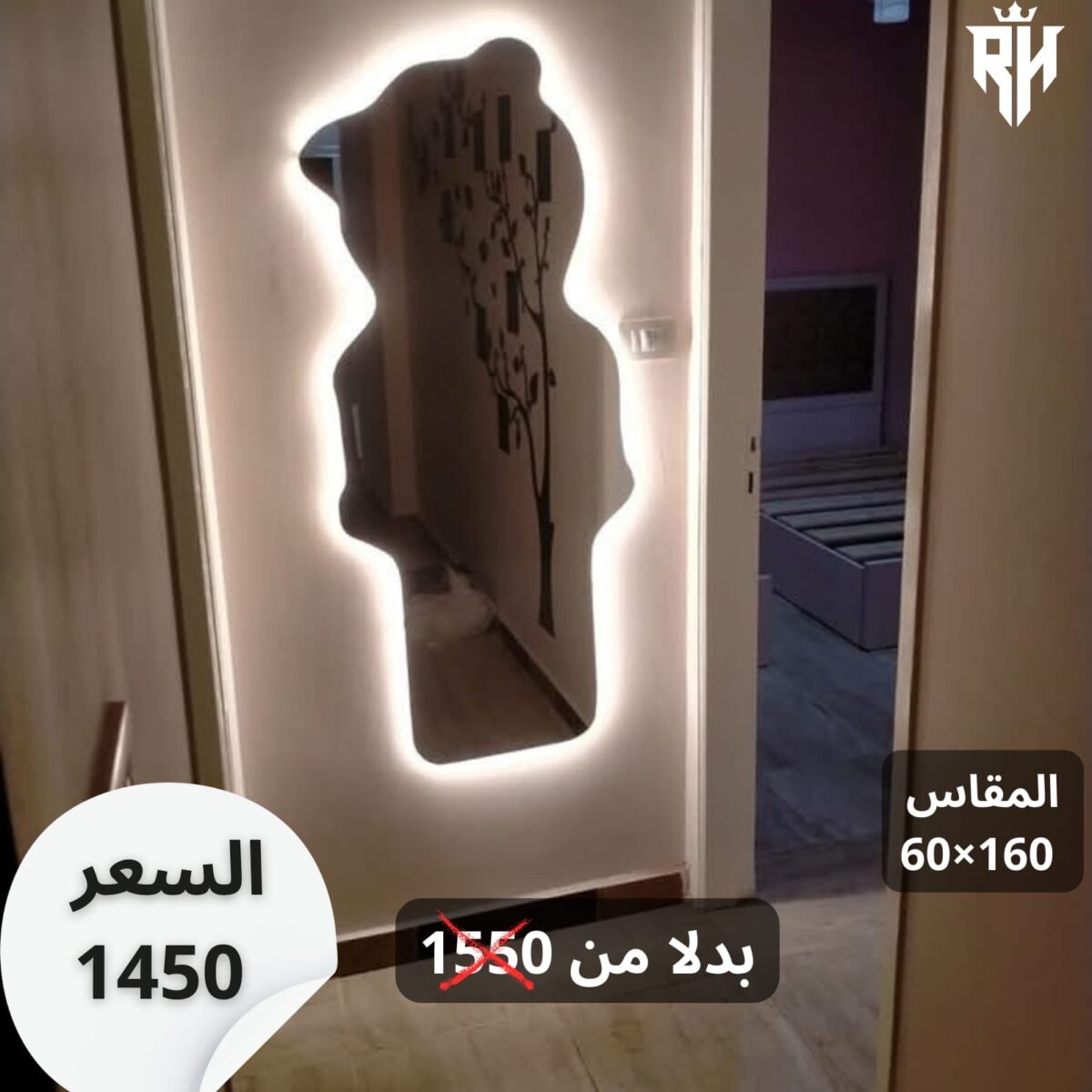 في قسم المرايات هتلاقي مرايات حيطان باطارات مودرن من الالومنيوم المطفى او اللامع وخشب زان مصقول وكمان مرايات فريم ليس فالمكانش اطار ظاهر للمودرن النضيف. المقاسات بتبدأ من مرايات صغيرة 30 في 40 سم للحمامات او غرف النوم لغاية مرايات ارضية مترين ونص طول وبتتعامل كأنها قطعة اثاث قائمة بحد ذاتها. لو نفسك في اضاءة مميزة بديل تضيف لها لمبة LED خلفية بتاعة Mirrors and Glass تقدر تتحكم في لون الاضاءة من دافئ لمائل للابيض البارد وتخلق جو رومانسي او عملي للماكياج وغرف الملابس