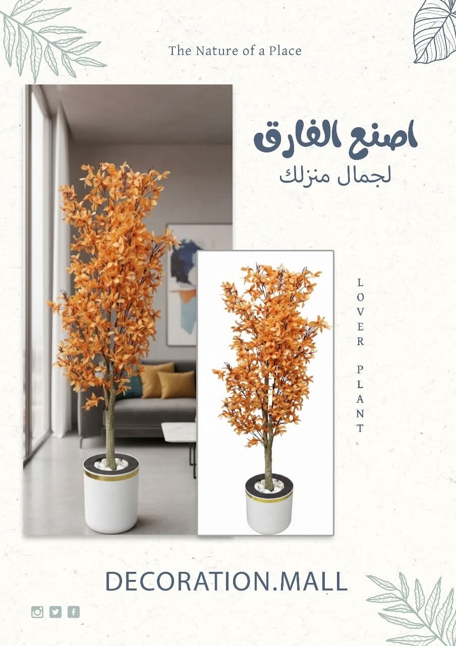 Decoration Mall بتهتم إن الأشجار الصناعية تكون بتفاصيل واقعية، من شكل الأوراق لدرجات اللون، علشان تطلع طبيعية وتدي لمسة ديكور مريحة. استخدام الأشجار دي بيساعد في كسر الجمود في المساحات، وبيخلي المكان أدفى من غير ما يكون فيه مبالغة أو ازدحام في الديكور. كمان سهولة التنضيف بتخليها عملية جدًا للاستخدام اليومي.
