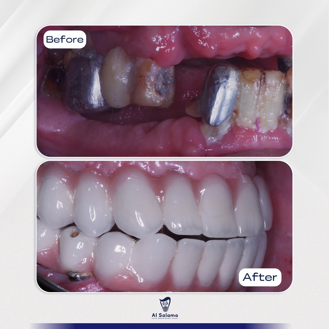 Alsalama Dental Clinic كمان بتهتم بعلاج مشاكل اللثة ومتابعتها بشكل دوري، لأن صحة اللثة جزء مهم جدًا من صحة الفم وجمال الابتسامة. ولو الحالة محتاجة تقويم، سواء معدني أو شفاف، بيتم تحديد الخطة المناسبة مع متابعة مستمرة لضمان أفضل نتيجة ممكنة.