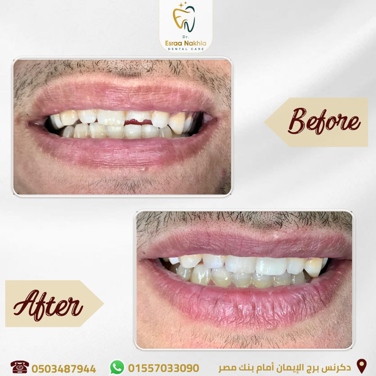 أما الزراعة فهي من أكتر المجالات اللي Dr. Esraa Nakhla - Dental Care متميزة فيها. الزراعة هناك بتتعمل بخامات عالمية وباستخدام تقنيات رقمية حديثة جدًا بتخلي شكل الزرعة طبيعي وثابت كأنها السنة الأصلية بالضبط. النتيجة بتكون مريحة جدًا في الشكل والاستخدام، وده بيدي للمريض ثقة كبيرة في نفسه وبيخليه يضحك براحة من تاني.