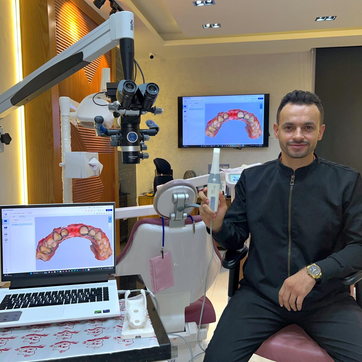 دكتور مصطفى بيبدأ دايمًا بالكشف الكامل على الأسنان واللثة باستخدام أجهزة دقيقة بتوضح أدق التفاصيل، وده بيساعده يحدد حالة المريض بدقة ويوصل لأفضل خطة علاج أو تجميل تناسبه. كل خطوة بيشرحها للمريض بهدوء عشان يبقى فاهم اللي بيتعمل ومطمن للنتيجة.