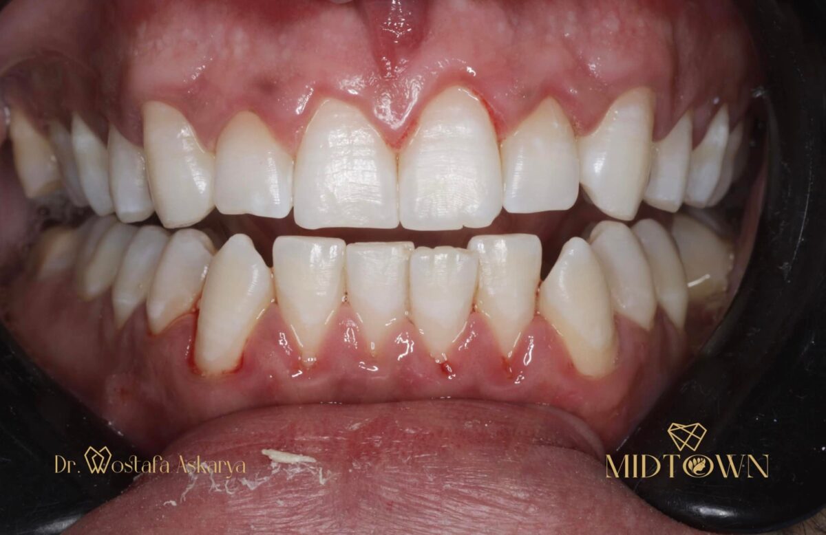 كمان الدكتور بيهتم بعلاج اللثة وتنضيفها من الالتهابات والتصبغات، لأن اللثة السليمة بتكمل جمال الابتسامة. ولو الحالة محتاجة تقويم، سواء معدني أو شفاف، العيادة بتوفر أحدث الأنواع اللي بتكون مريحة جدًا وسهلة في الاستخدام ونتيجتها ممتازة.