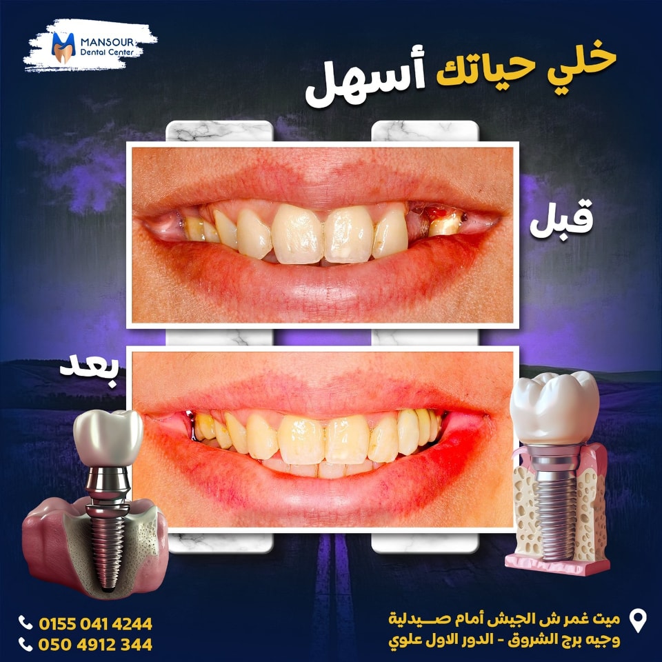 باختصار، Mansour Dental Center مش مجرد مركز لعلاج الأسنان، لكنه تجربة متكاملة فيها علم وذوق واحتراف. سواء محتاج علاج بسيط، زراعة، تجميل شامل، أو استعداد قبل الفرح، هناك هتلاقي كل اللي محتاجه بأسلوب راقي وشغل فعلاً يستحق الثقة. لو بتدور على دكتور فاهم، محترف، وبيهتم بكل تفصيلة في شغله، فـ Mansour Dental Center هو المكان اللي فعلاً هتخرج منه بابتسامة جميلة وواثقة من أول مرة.