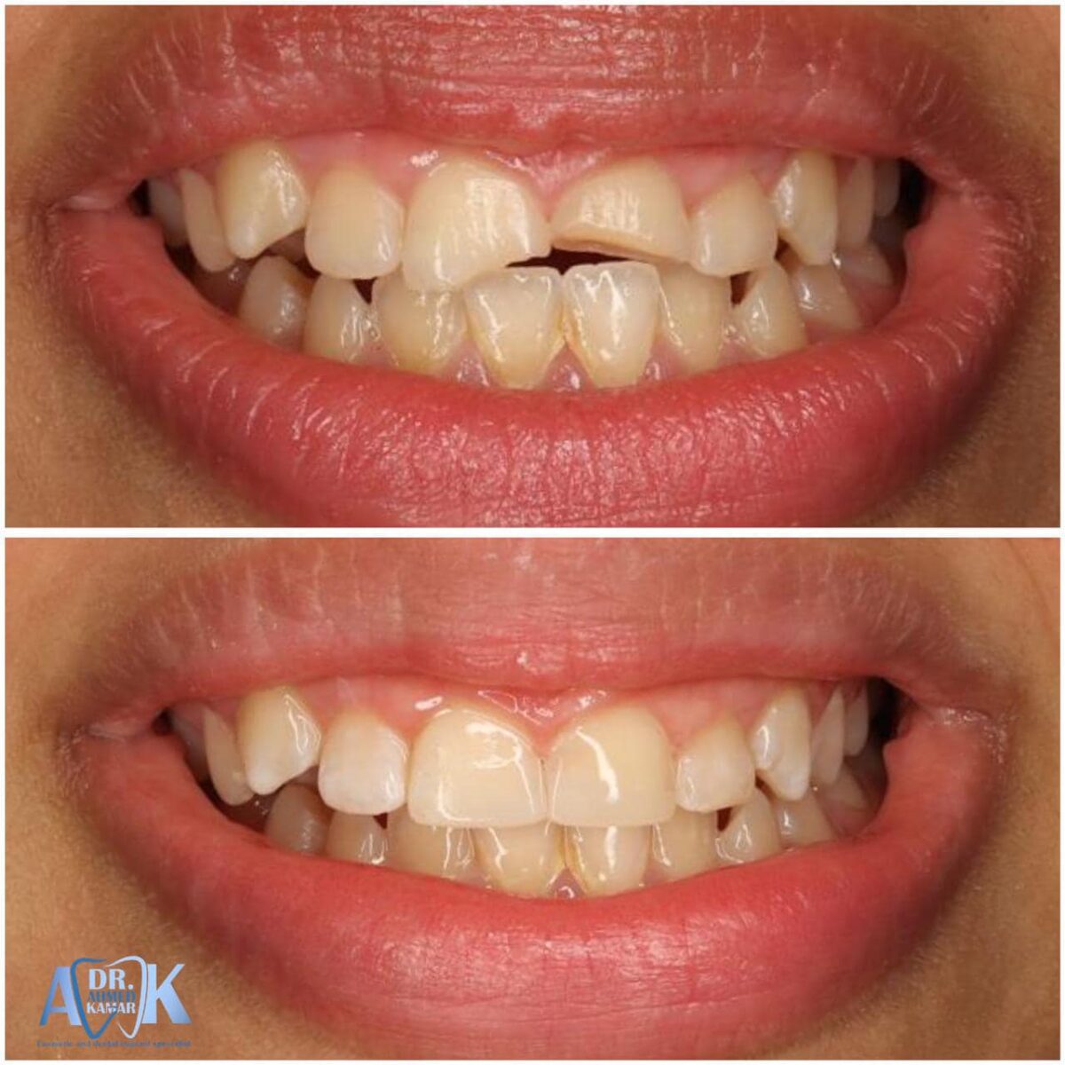 لترتيب الأسنان بيشتغلوا بتقويم شفاف بيتغيّر كل أسبوعين، والبرنامج الرقمي بيورّيك حركة كل سن بالتفصيل على الموبايل بتاعك، فتتابع الرحلة خطوة بخطوة. لو الحالة معقدة وعايزة تقويم معدني، موجود برده بخامات خفيفة وأقواس أرفع من المعتاد علشان ما تحسش إن بوقك متقفّل.