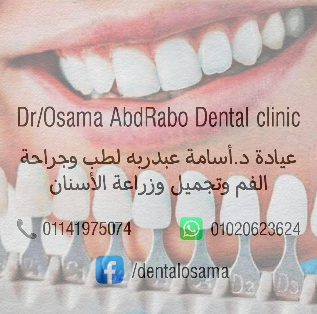 باختصار، Dr. Osama AbdRabo Dental Clinic مش مجرد عيادة أسنان، لكنها مركز متكامل للعناية بالابتسامة والصحة الفموية. سواء محتاج علاج بسيط، زراعة، تجميل شامل، أو استعداد قبل الفرح، هناك هتلاقي كل اللي محتاجه بأسلوب راقي وشغل فعلاً يستحق الثقة. لو بتدور على دكتور محترف، دقيق، وليه لمسة فنية في شغله، فـ الدكتور أسامة عبد ربه هو الاسم اللي أكيد هتخرج من عنده بابتسامة جميلة وواثقة من أول زيارة.