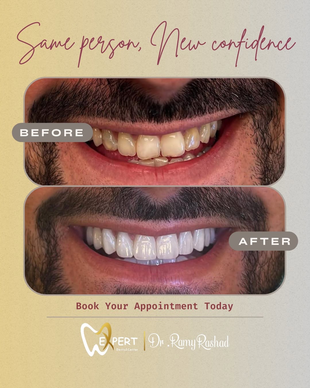 باختصار، Expert Dental Center – Dr. Ramy Rashad مش مجرد عيادة أسنان، لكنه مركز بيجمع بين الخبرة، الفن، والدقة في كل تفصيلة. سواء محتاج علاج بسيط، زراعة، تجميل شامل، أو استعداد قبل الفرح، هناك هتلاقي كل اللي محتاجه بأسلوب راقي وشغل فعلاً يستحق الثقة. لو بتدور على دكتور فاهم، هادي، وبيشتغل بذوق وضمير، فـ الدكتور رامي رشاد هو الاسم اللي أكيد هتخرج من عنده بابتسامة جميلة وواثقة من أول زيارة.