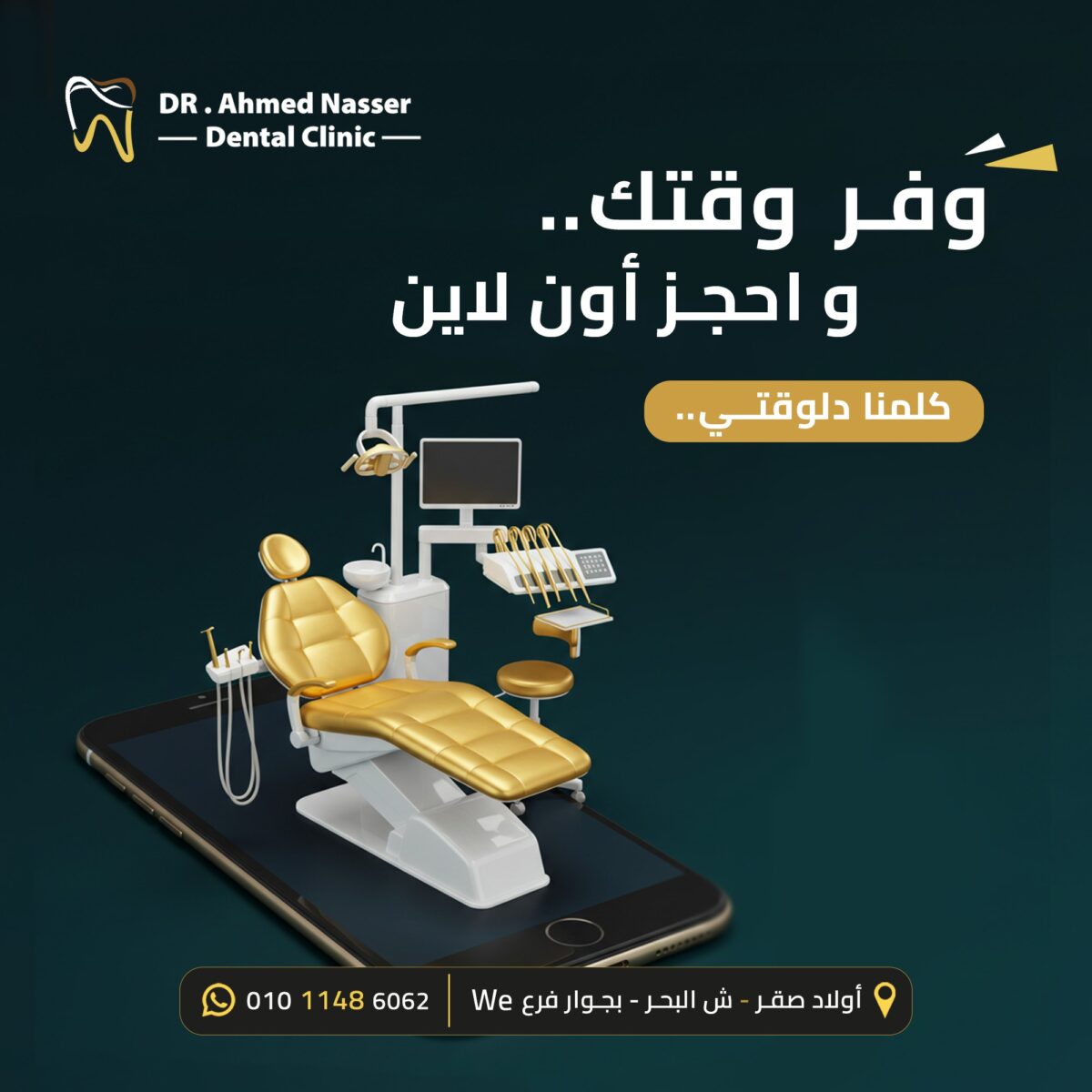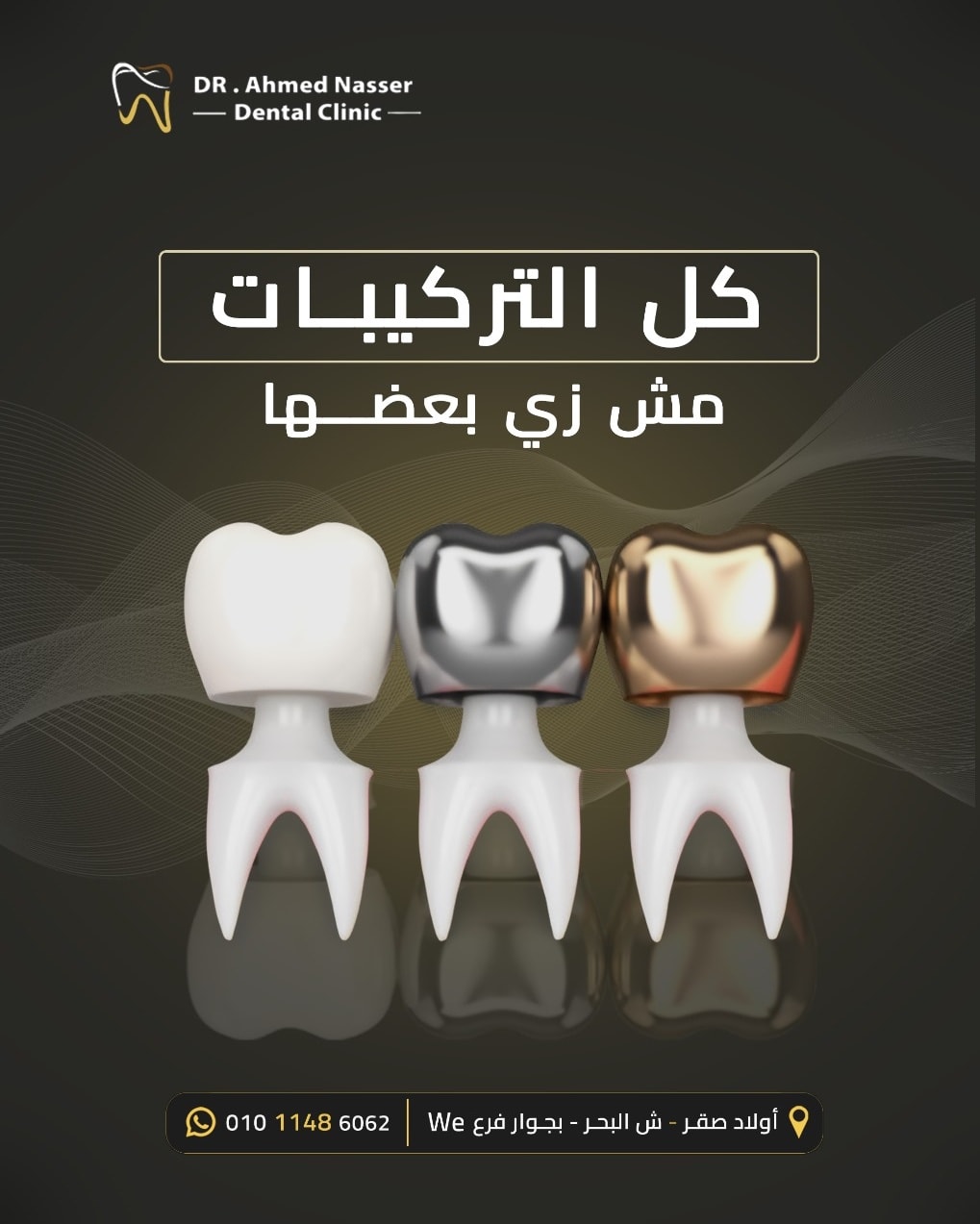 باختصار، Dr. Ahmed Nasser مش مجرد دكتور أسنان، لكنه متخصص فاهم كويس إن الابتسامة هي مفتاح الثقة بالنفس. سواء محتاج علاج بسيط، زراعة، تجميل شامل، أو تحضير قبل الفرح، هناك هتلاقي كل اللي محتاجه بأسلوب راقي وشغل فعلاً يستحق الثقة. لو بتدور على دكتور دقيق، محترف، وبيشتغل بذوق وضمير، فـ الدكتور أحمد ناصر هو المكان اللي أكيد هتخرج منه بابتسامة جميلة وواثقة من أول زيارة.
