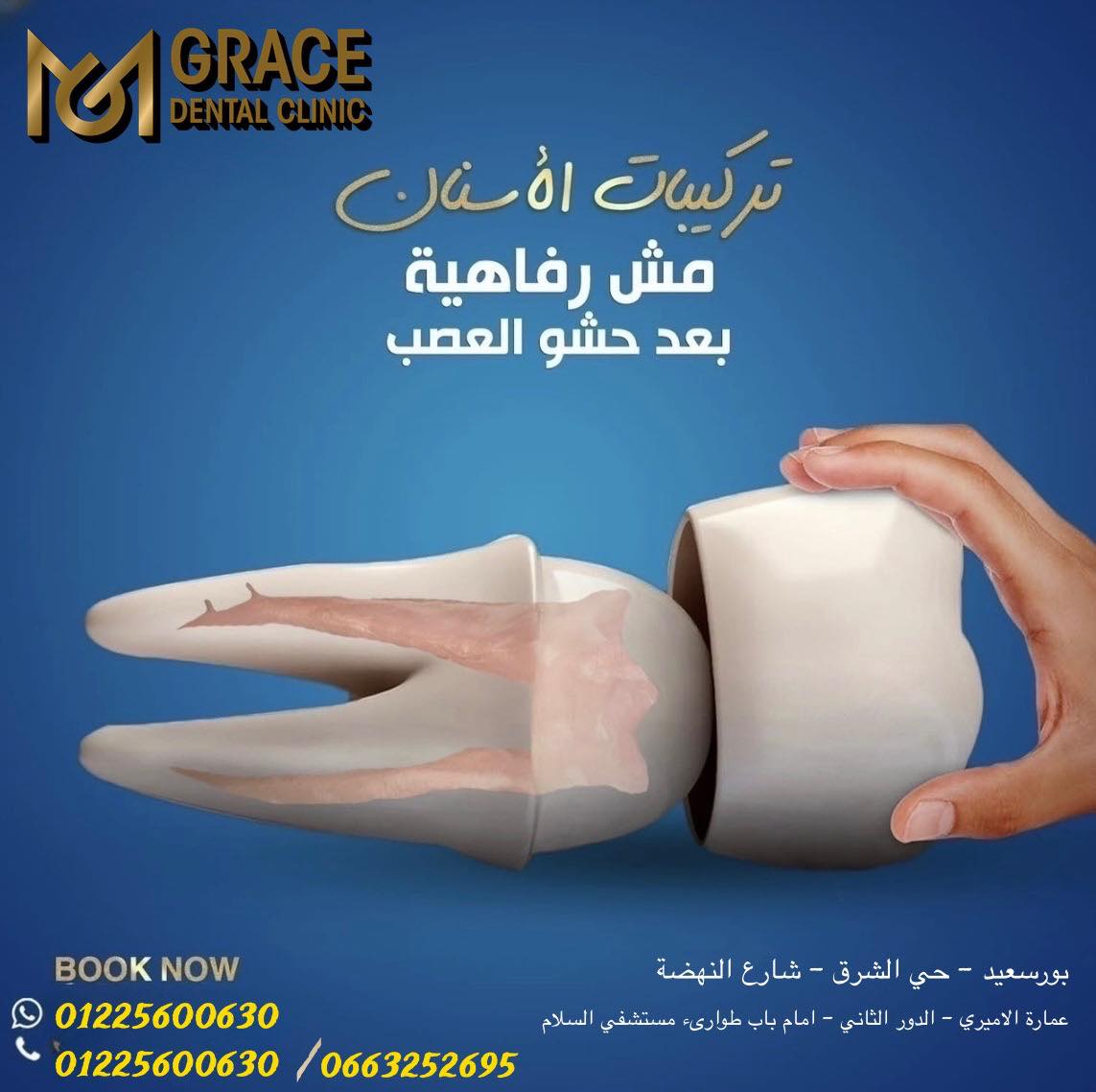 باختصار، Grace Dental Clinic مش مجرد عيادة أسنان، لكنها مركز متكامل للجمال والعناية بصحة الفم والابتسامة. سواء محتاج علاج بسيط، زراعة، تجميل شامل، أو تجهيز قبل الفرح، هناك هتلاقي كل اللي محتاجه بأسلوب راقي وشغل فعلاً يستحق الثقة. لو بتدور على مكان يهتم براحتك وابتسامتك بنفس القدر، فـ Grace Dental Clinic هو المكان اللي أكيد هتخرج منه بابتسامة جميلة وواثقة من أول زيارة.