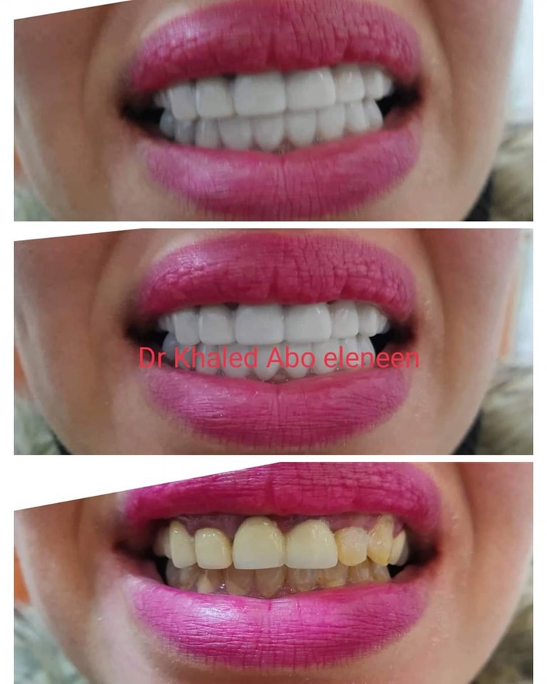 كمان العيادة متخصصة في جلسات تبييض الأسنان سواء بالليزر أو بالمواد التجميلية الحديثة اللي بتدي نتيجة فورية وآمنة جدًا. الخدمة دي من أكتر الحاجات اللي العرايس والعرايس الجُداد بيطلبوها قبل الفرح لأنها بتدي لون أبيض طبيعي وشكل جذاب يخلي الابتسامة شكلها مشرق ومليان ثقة. دكتور خالد أبو العينين بيختار نوع التبييض حسب حالة الأسنان عشان النتيجة تكون مثالية ومفيهاش أي ضرر أو حساسية.