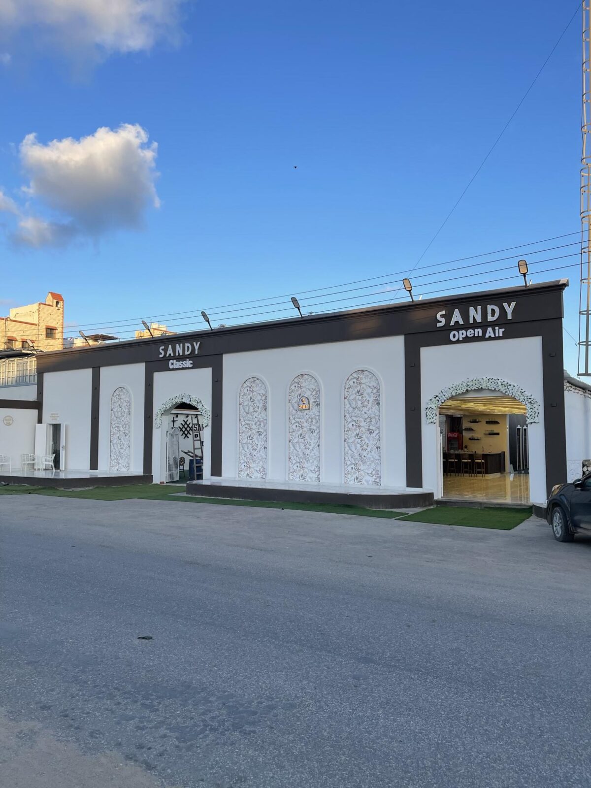قاعة ساندي غالباً بتكون موجودة في منطقة قريبة من الخدمات وطرق المواصلات الرئيسية وده بيسهل وصول الضيوف سواء بالعربية أو المواصلات العامة كمان حوالين المكان مساحات لركن السيارات والأمن بيتابع الدخول علشان كل حاجة تكون منظمة