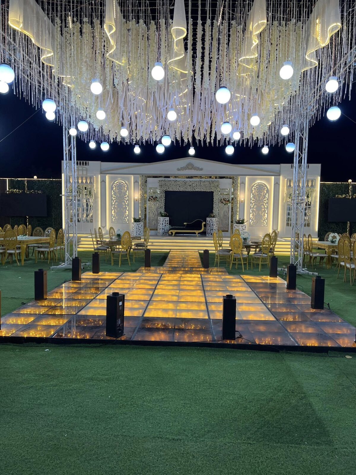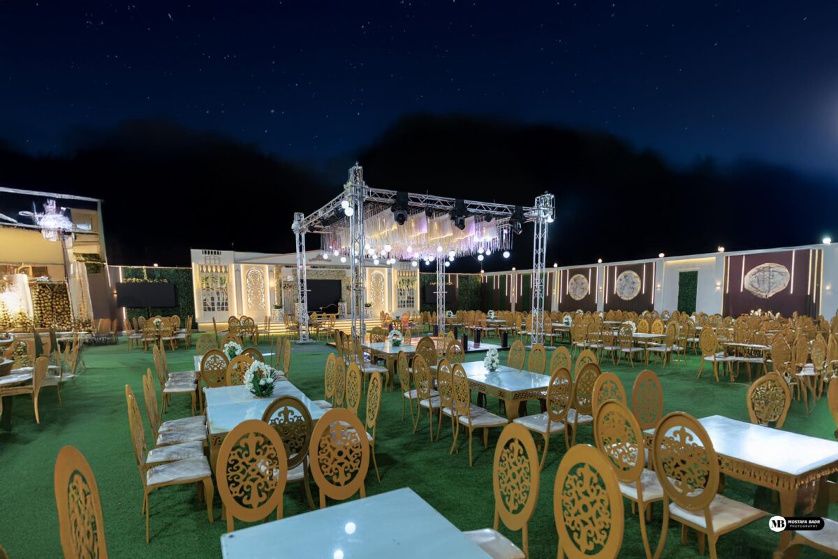 التوزيع ده بيسمح للمعازيم بالتحرك بسهولة ومن غير زحمة وبيخلي كل ضيف يشوف الكوشة والزفة من غير أي عوائق
