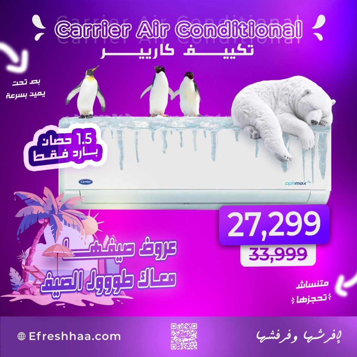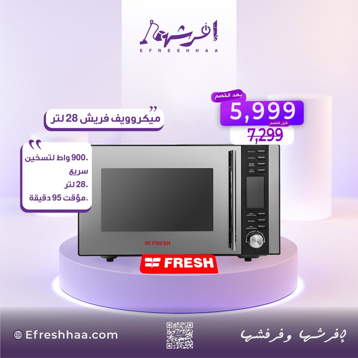 في Efreshhaa هتلاقي كل اللي ممكن تحتاجه لتجهيز بيتك. عندهم تلاجات بأحجام مختلفة، غسالات، ديب فريزر، بوتاجازات، شاشات، تكييفات، وسخانات. كمان بيقدّموا الأجهزة الصغيرة زي المكانس، الميكروويف، الكاتيل، الخلاطات، والعجّانات. كل الأجهزة هناك أصلية ومضمونة، ومعروضة بشكل منظم يخليك تشوف الموديلات المختلفة وتقارن براحتك.