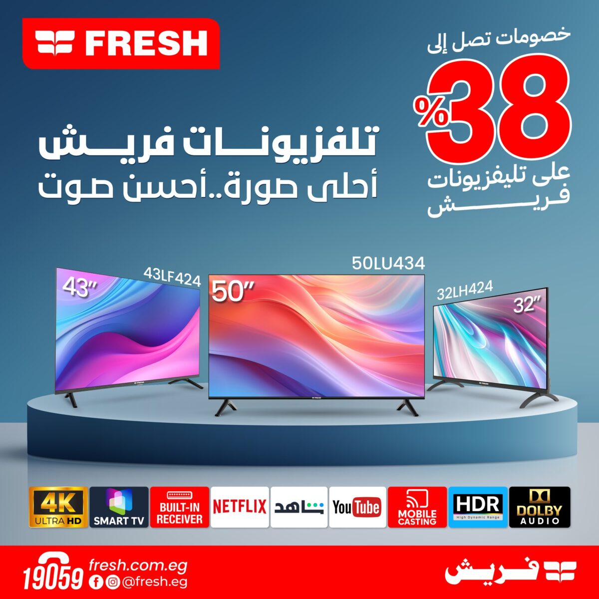 كمان من المميزات المهمة إن FRESH عندها شبكة توزيع ضخمة، ومعارض في محافظات كتير على مستوى الجمهورية، وكمان منتجاتها متوفرة عند أغلب تجار الأجهزة الكبيرة. يعني تقدر تلاقي أي منتج بسهولة من غير ما تتعب في البحث، وكمان عندهم موقع إلكتروني تقدر تشوف عليه الأسعار والمواصفات وتطلب أونلاين.