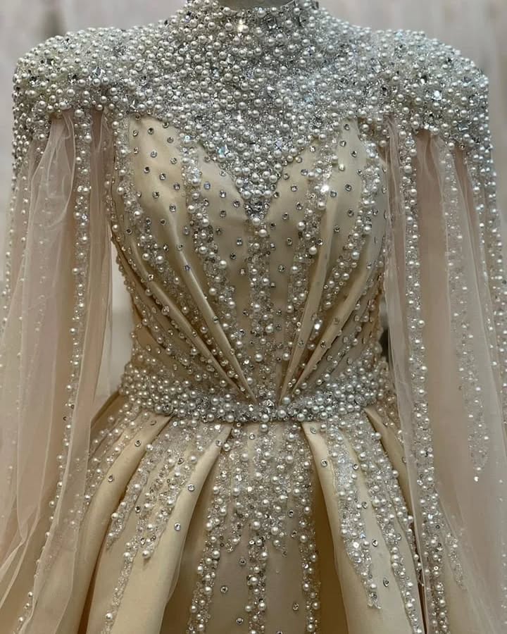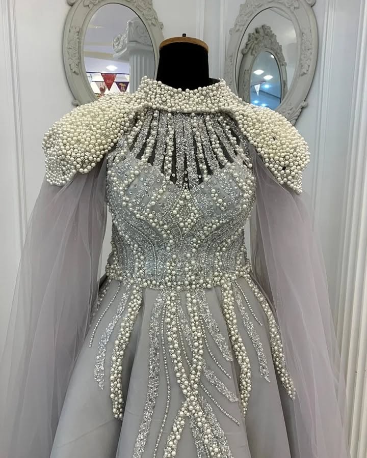 كل فستان هناك معمول بخامات نضيفة، وأقمشة مستوردة زي التل والدانتيل والساتان، وكمان فيه موديلات بتدخل فيها خامات مدموجة علشان تدي شكل جديد ومختلف. الموديلات متجددة، وبيتم تحديثها باستمرار علشان تلاقي دايمًا حاجة على الموضة.
