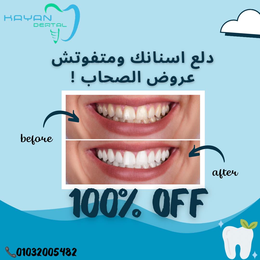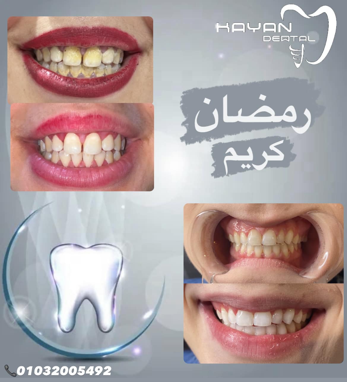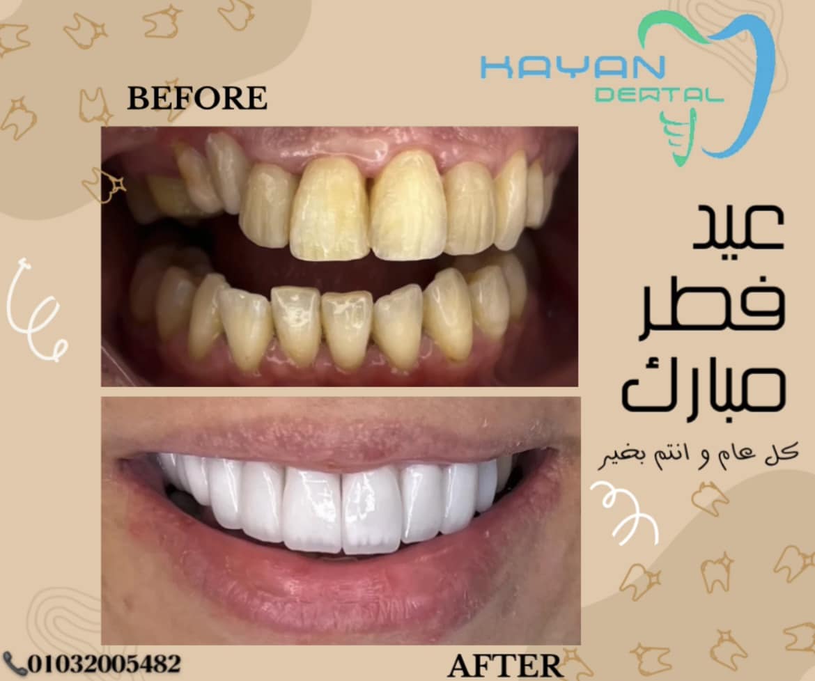 المواعيد مرنة وبتناسب كل الأوقات، والحجز سهل سواء من خلال التليفون أو الواتساب. الأسعار كمان واضحة ومحددة من الأول من غير أي مفاجآت. مع Kayan Dental Clinic هتلاقي إنك في إيدين فريق عنده خبرة وبيستخدم أحدث تكنولوجيا، وفي نفس الوقت بيهتم براحتك ويخليك تطلع بابتسامة صحية وواثقة تدوم معاك سنين.