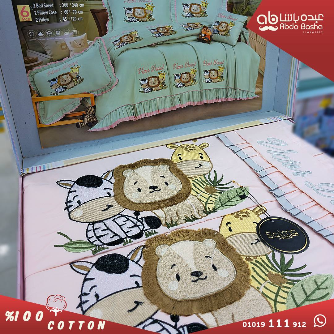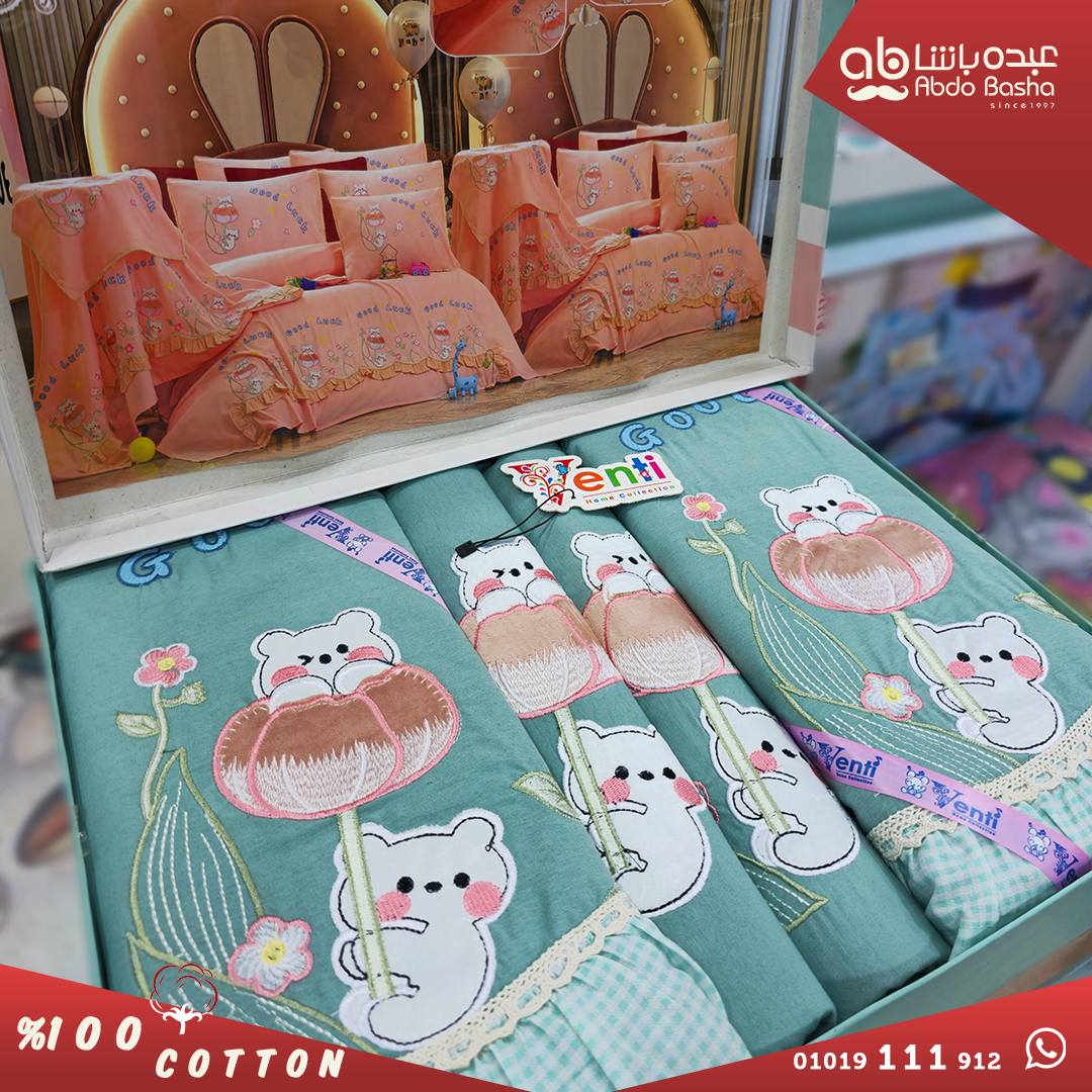 عبده باشا للمفروشات بيقدم أطقم ملايات من قطن مصري 100% بعدد خيوط بيبدأ من 200 وبيوصل لـ 600، علشان تضمن الراحة والمتانة حتى مع الاستخدام اليومي. الأطقم متوفرة بمقاسات مختلفة من المفرد للمزدوج وحتى الكينج سايز، ومعاها خداديّات وغطاء لحاف متناسقين في النقشة واللون.
