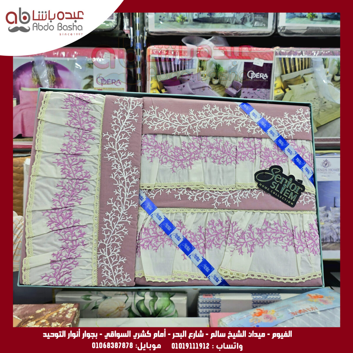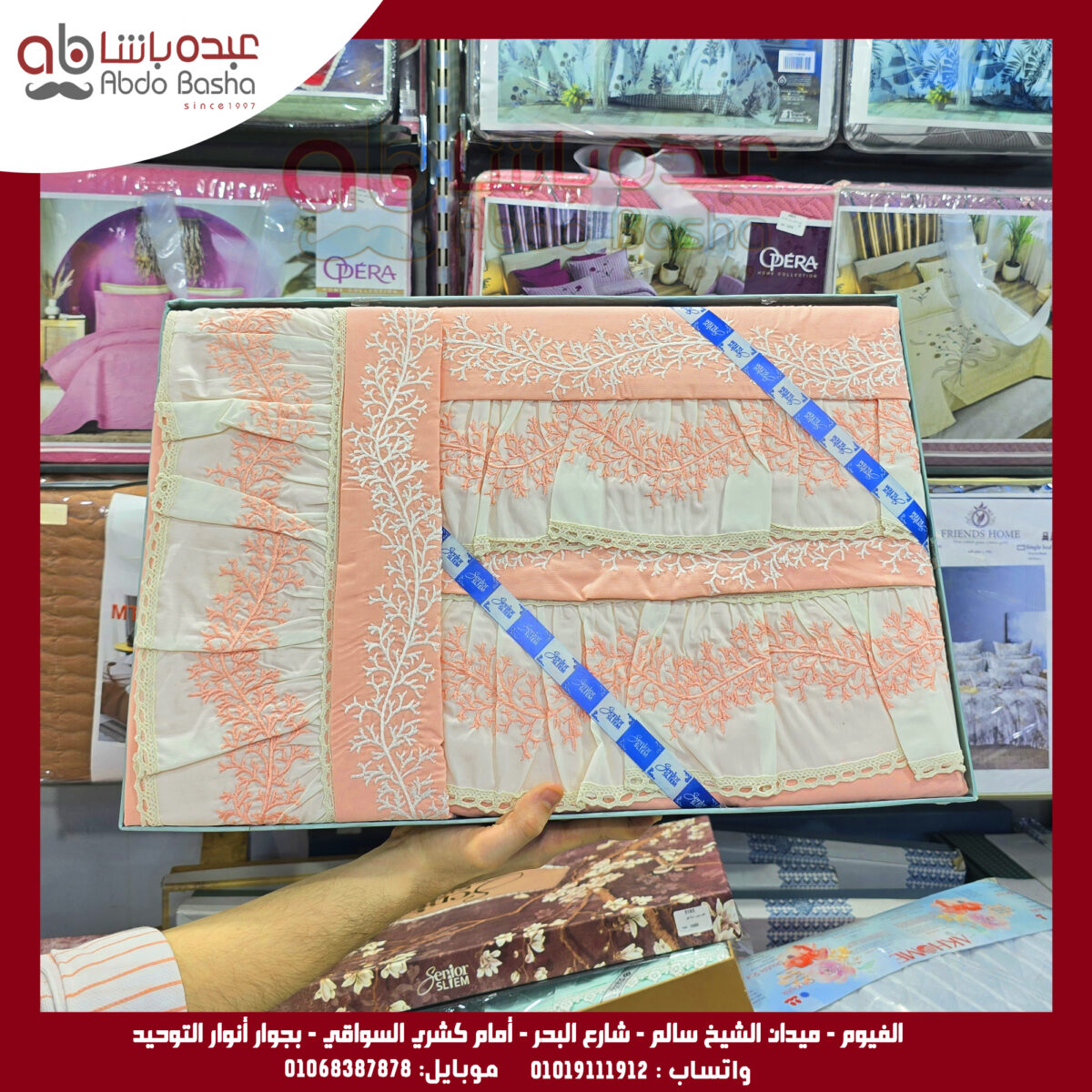 عبده باشا للمفروشات بيقدّم خدمة تفصيل لأي مقاس خاص سواء ملايات، أغطية، أو كوفرات كنب، علشان القطعة تناسب مساحتك بالضبط.