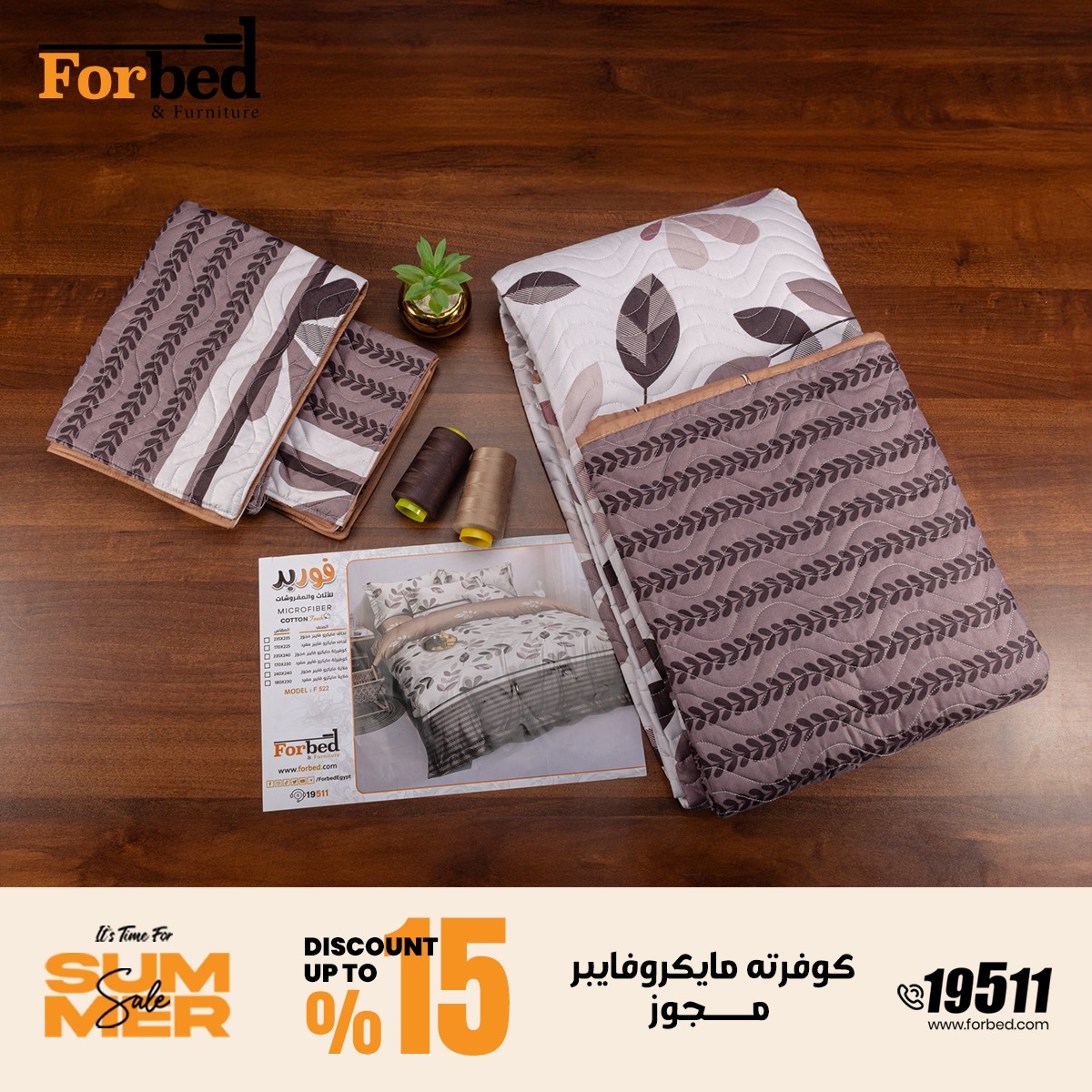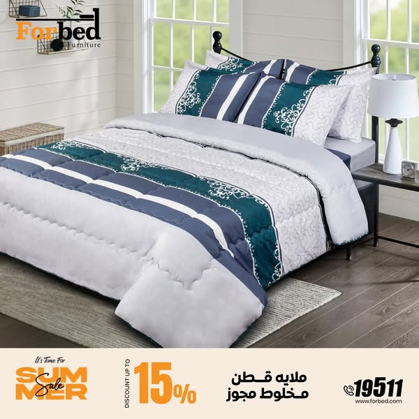 فوربد الفيوم بيقدّم باقات تجهيز سرير (ملايات + غطاء لحاف + خداديّات) بأسعار موفّرة، وخصومات موسمية على الألحفة والبطاطين وأطقم المناشف. في تقسيط بدون فوائد في فترات محددة، وأسعار خاصة للطلبات الكبيرة للشقق المفروشة والمشروعات.